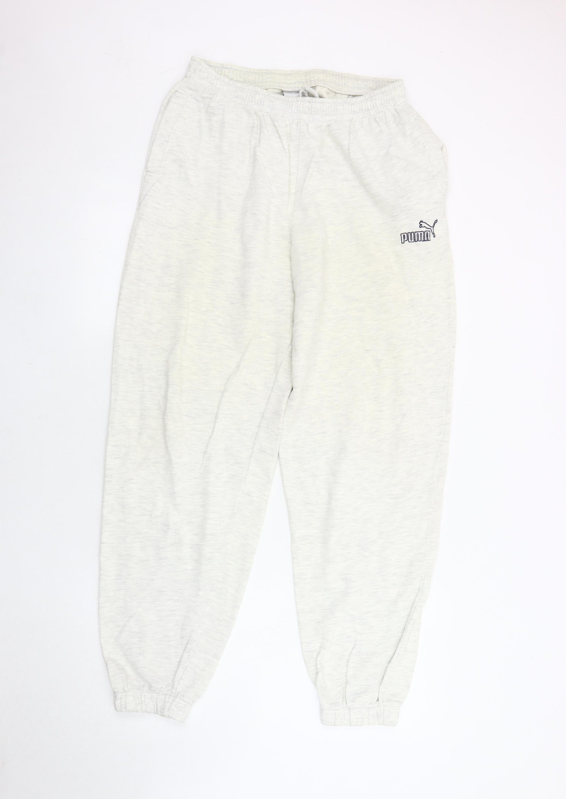 Puma Men's White Sweatpants M - Elastic Waist, Pockets