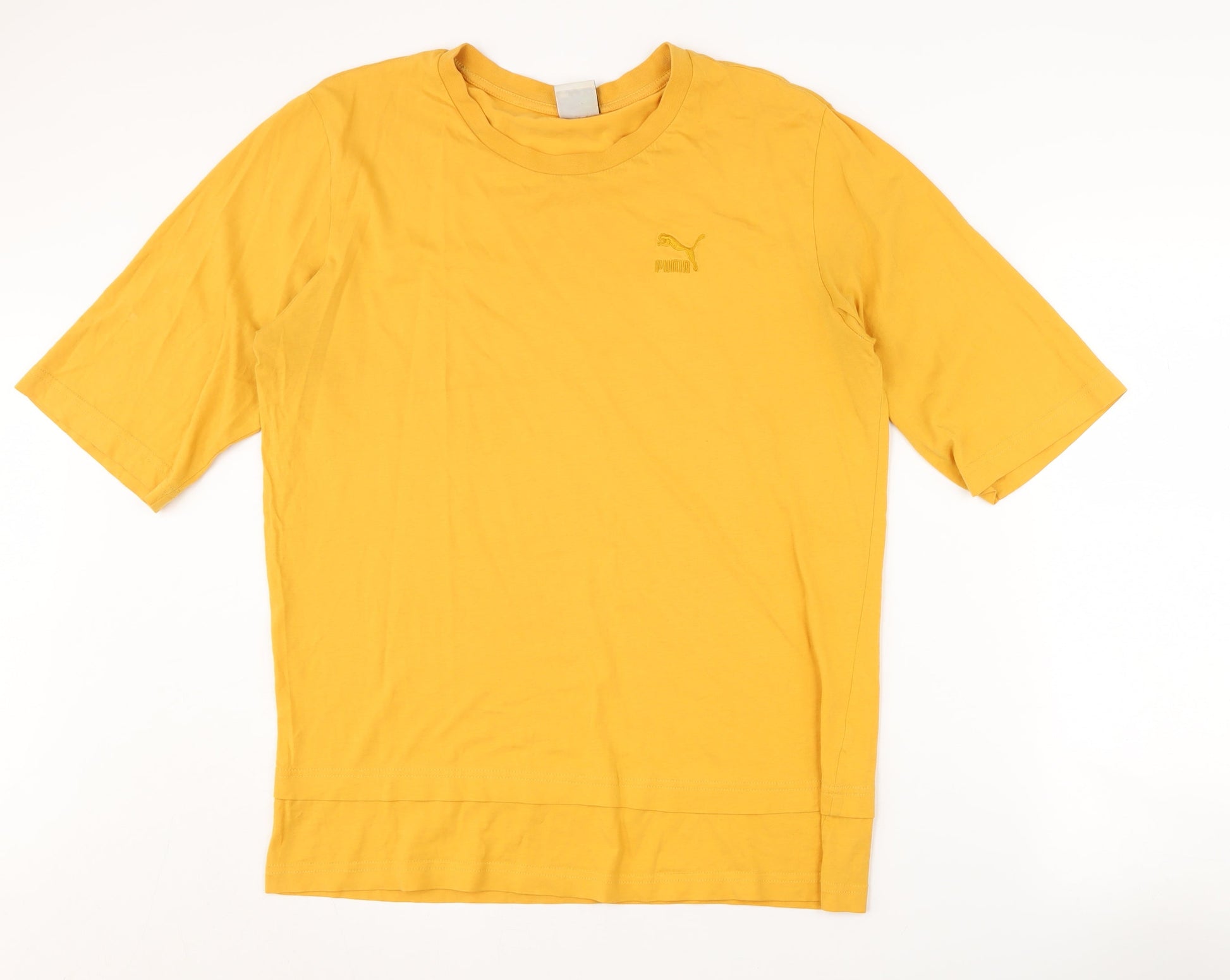 Puma Men's Yellow Medium Crew Neck Cotton T-Shirt
