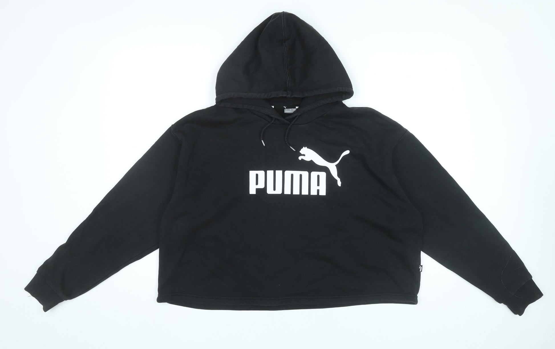 Puma Womens Black Pullover Hoodie L Cotton Blend Logo Sportswear