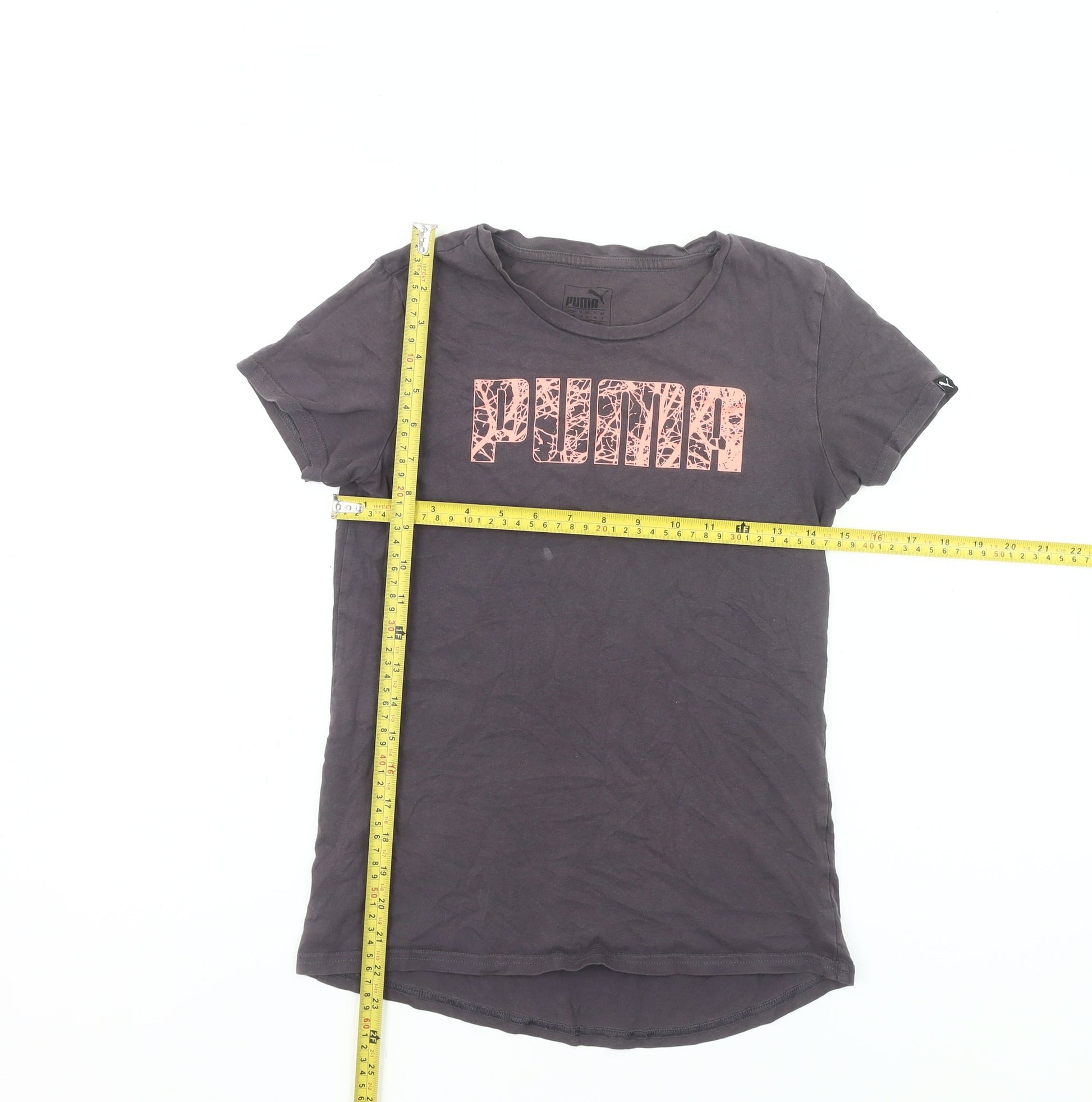 Puma Womens Black S Logo T-Shirt Casual Short Sleeve Cotton