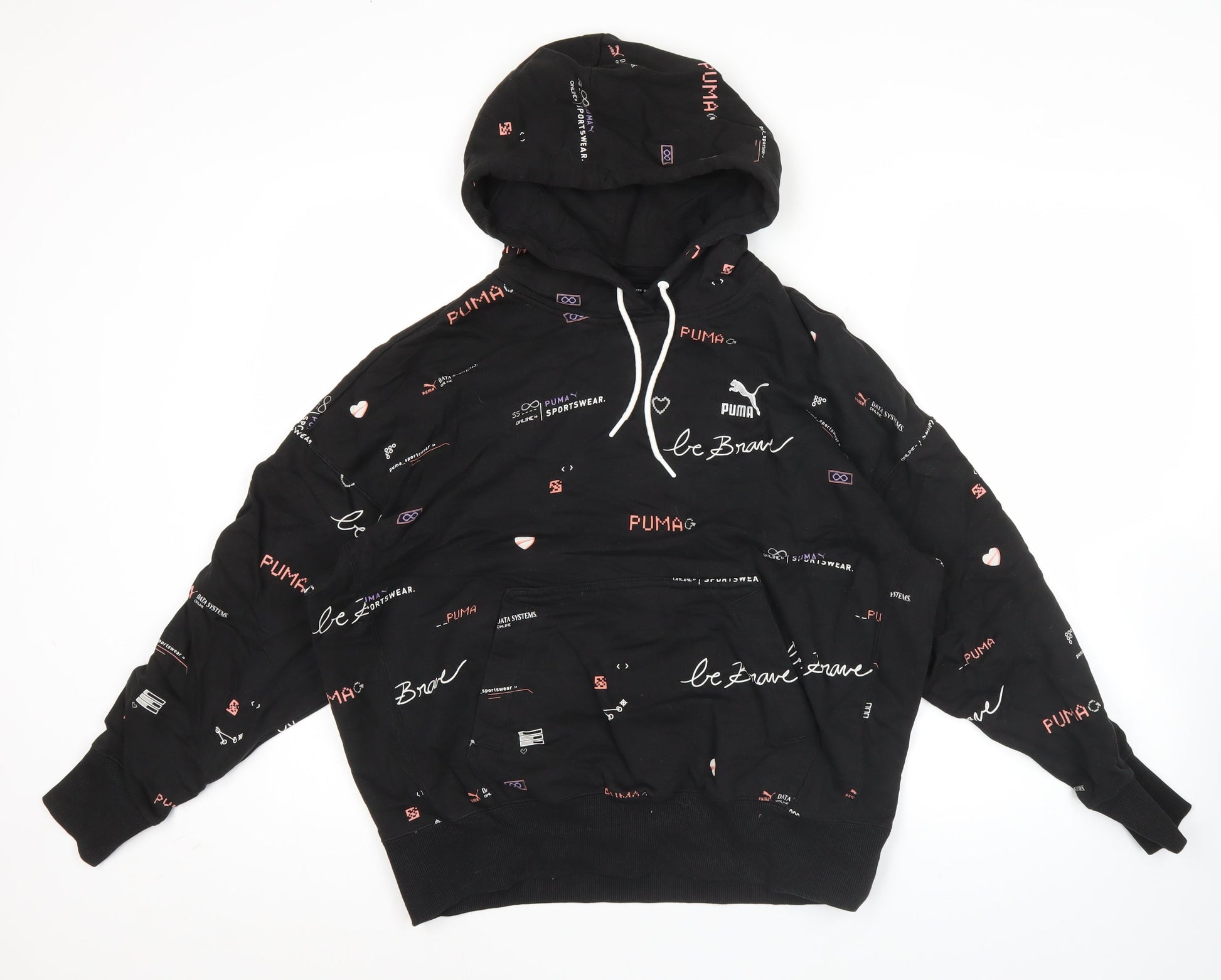 Puma Womens Black Small Pullover Hoodie Graphic Print Long Sleeve