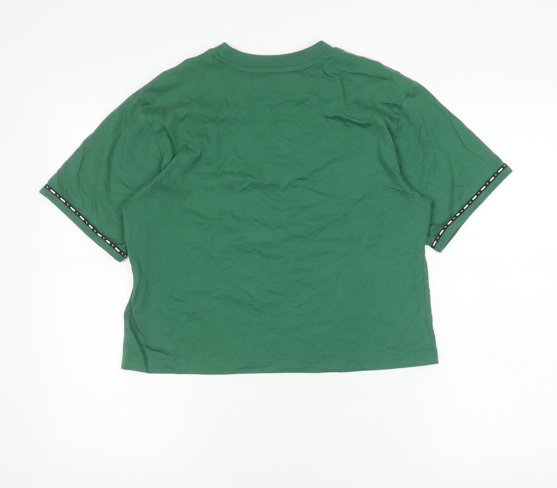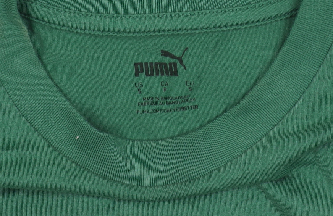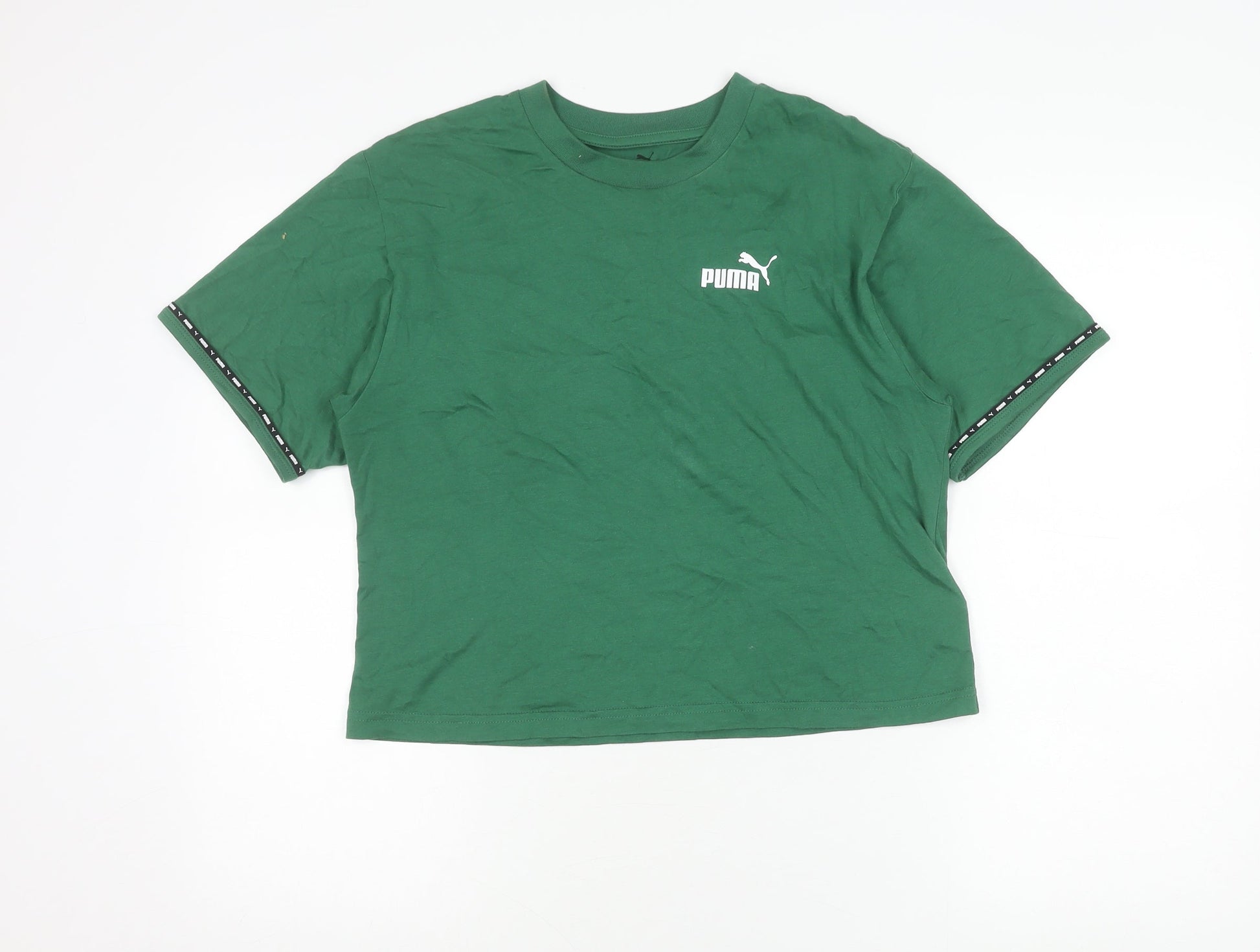 Puma Womens Green Cropped T-Shirt Size S Crew Neck Logo Casual Top