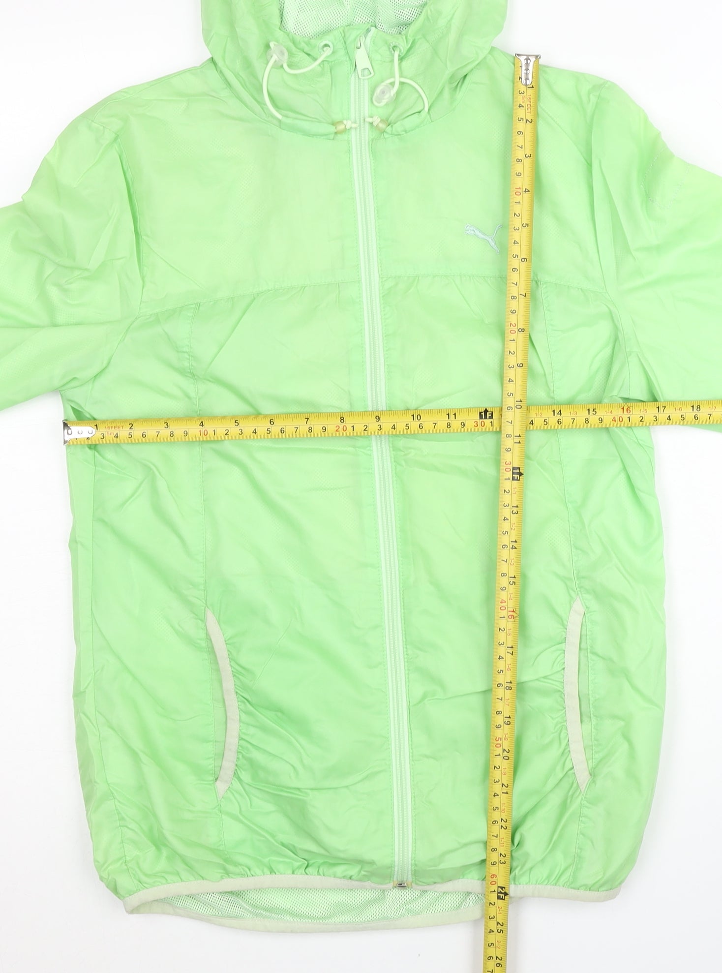 Puma Womens Green L Windbreaker Jacket Hooded Lightweight Nylon