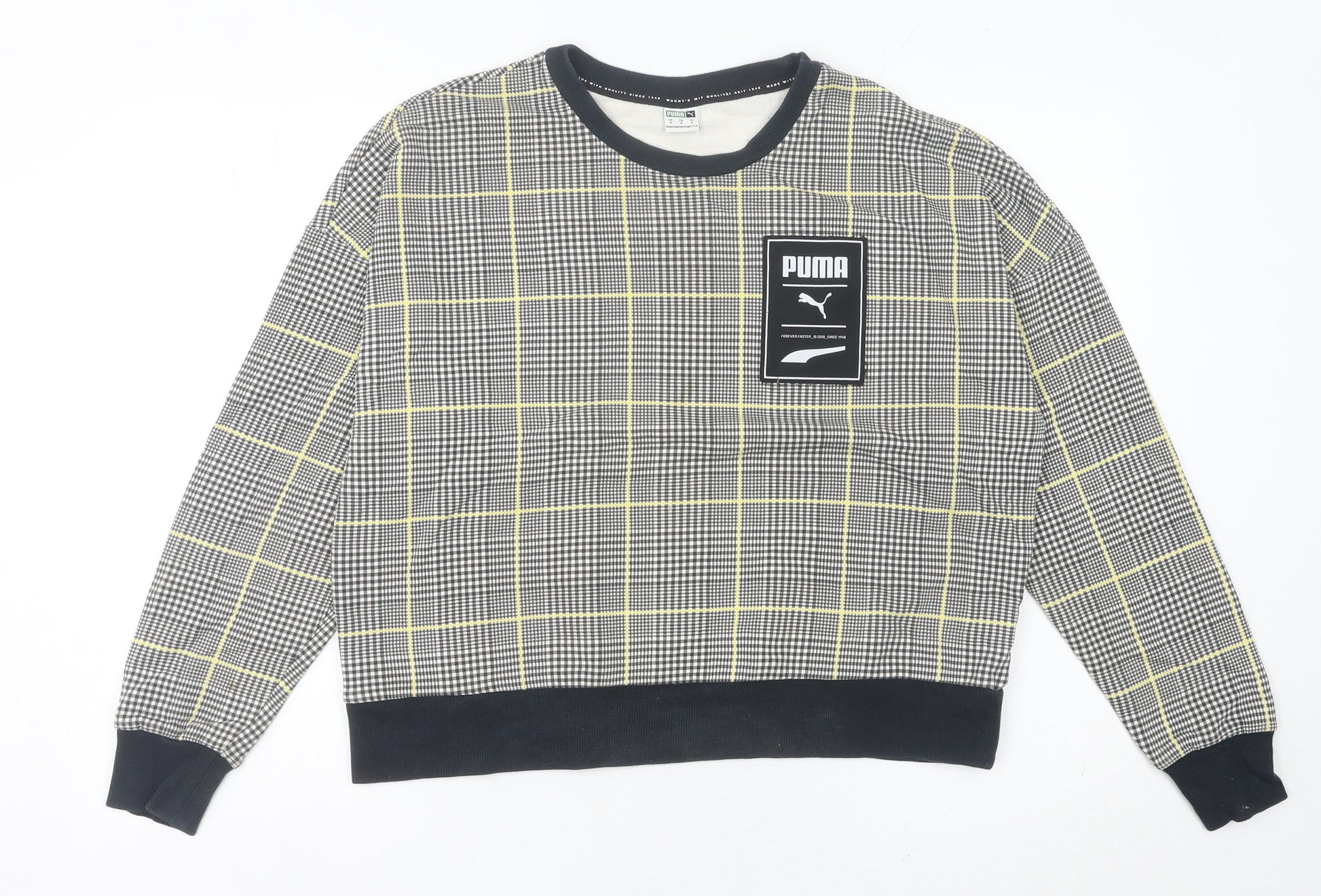 Puma Womens Multicoloured Check Sweatshirt Size 12 Long Sleeve Crew Neck