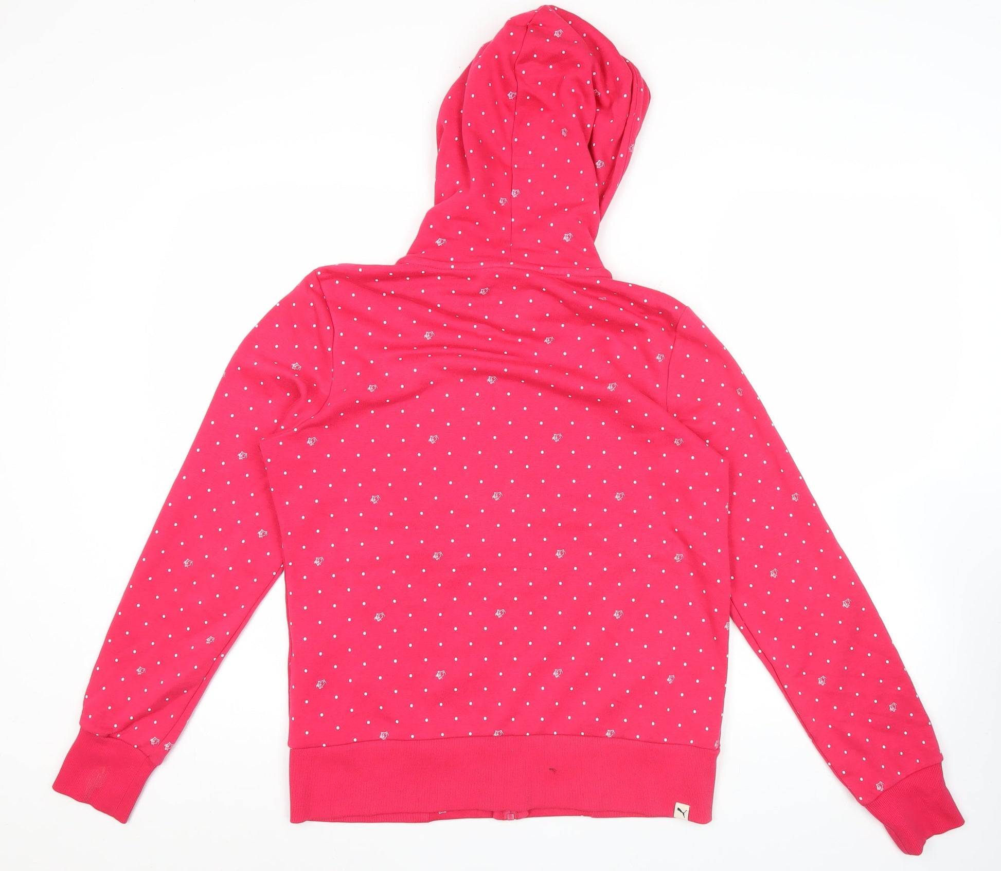 Puma Womens Pink Polka Dot Full Zip Hoodie XL Casual Sportswear
