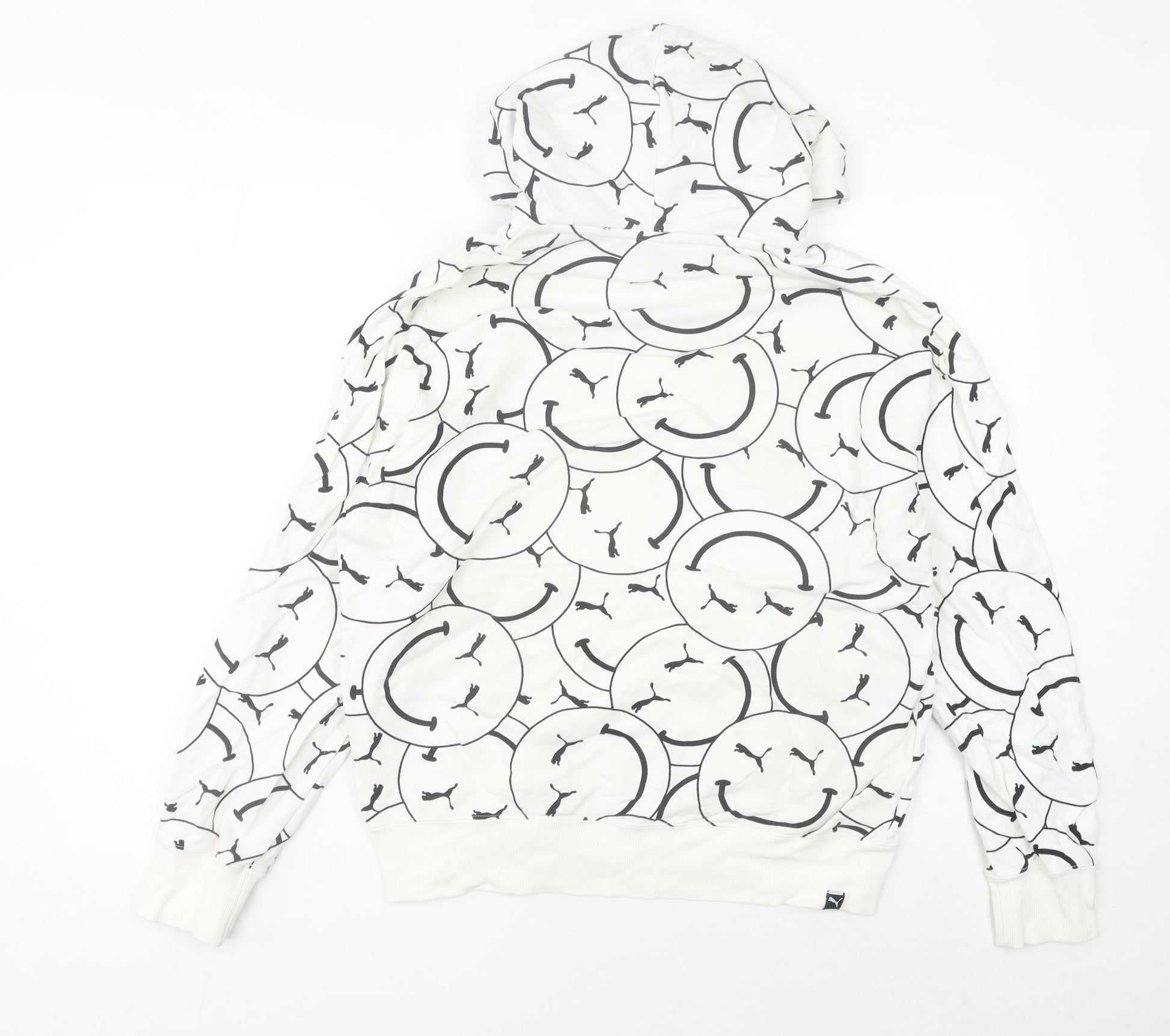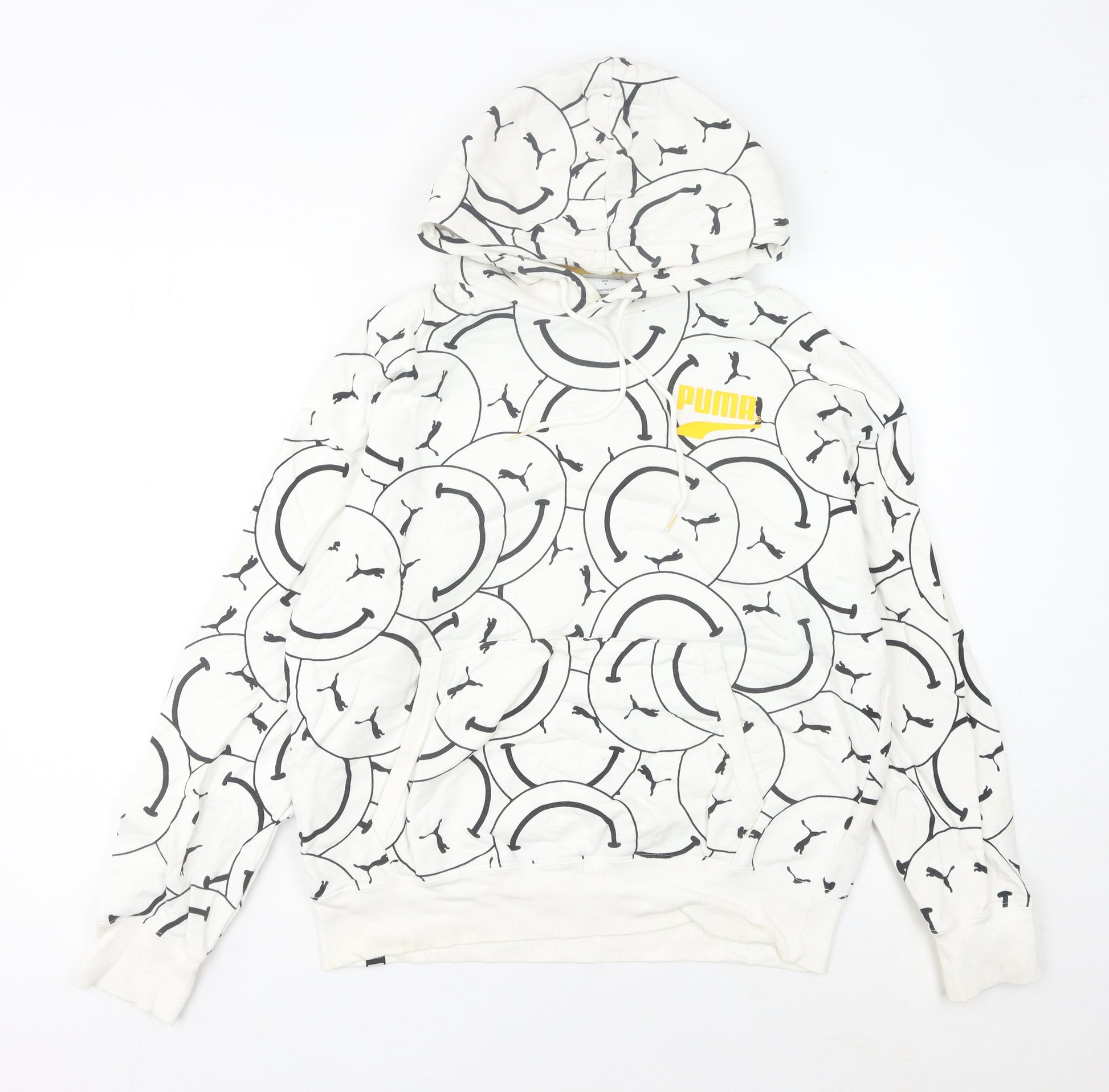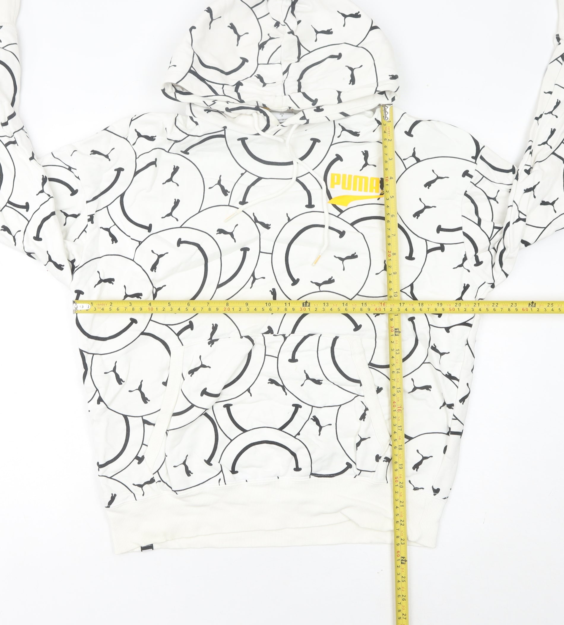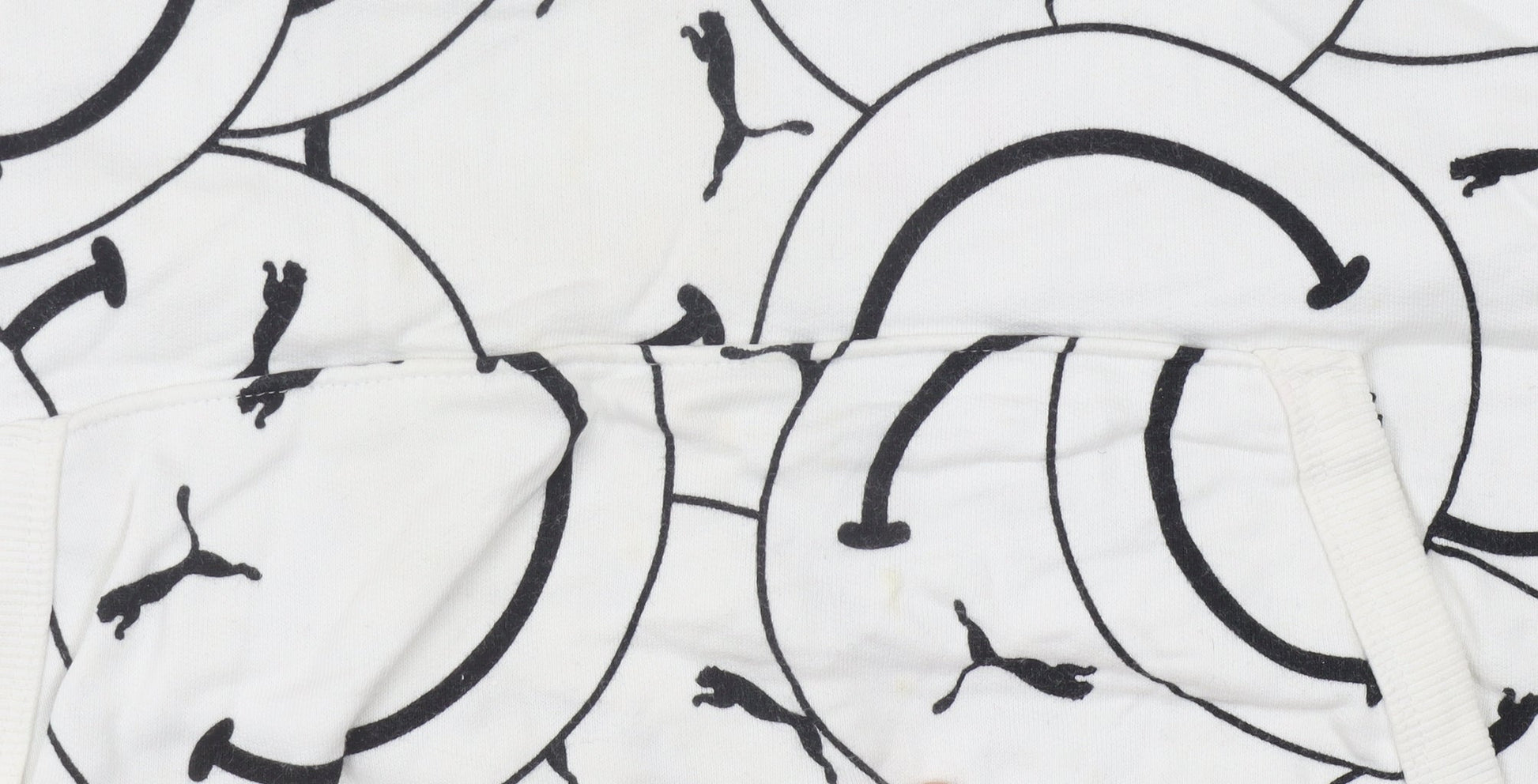 Puma Womens White Graphic Logo Pullover Hoodie Size 8