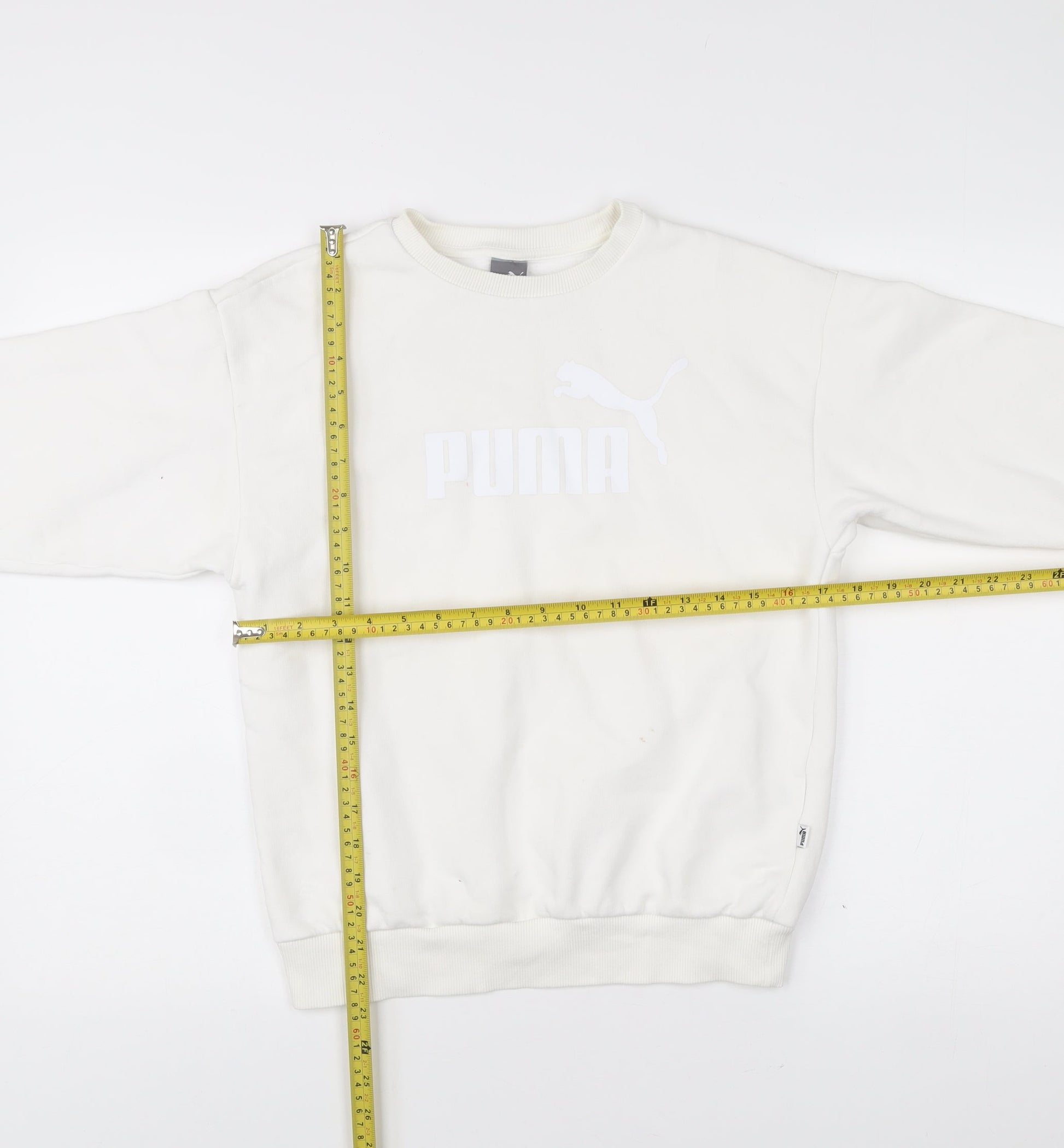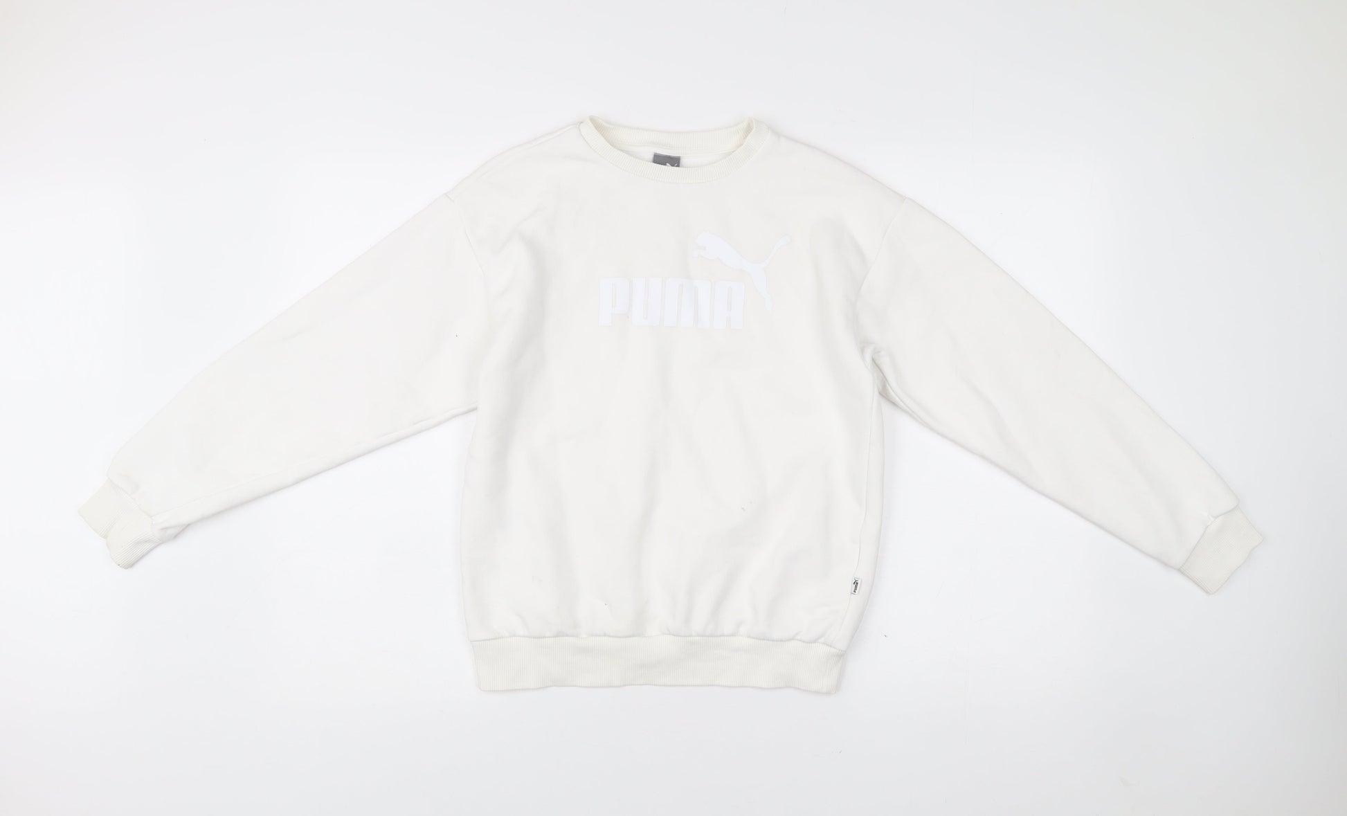 Puma Womens White XS Pullover Sweatshirt Crew Neck Logo Cotton Blend