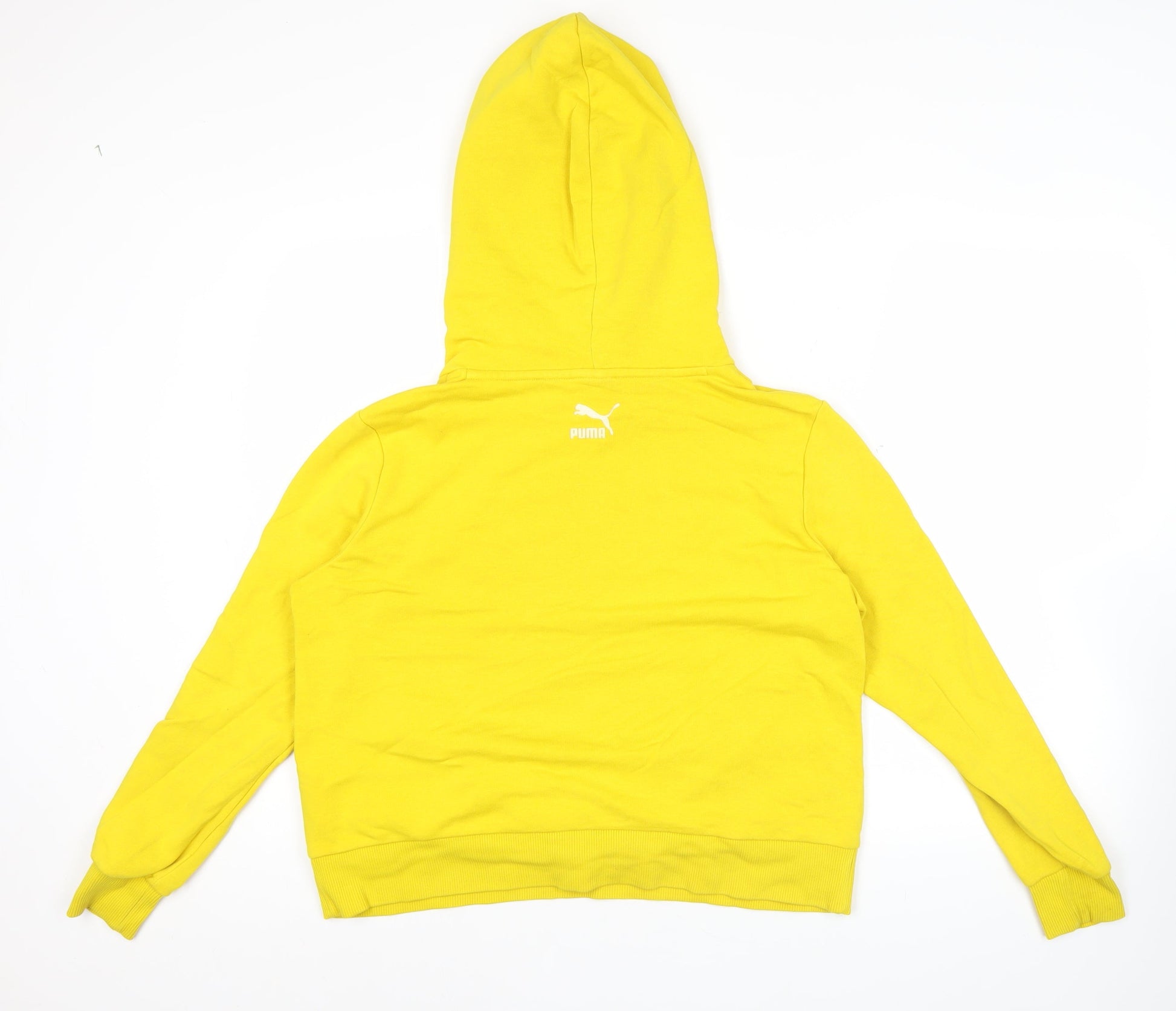 Puma Womens Yellow Hoodie Small Cotton Blend Pullover Logo Sportswear