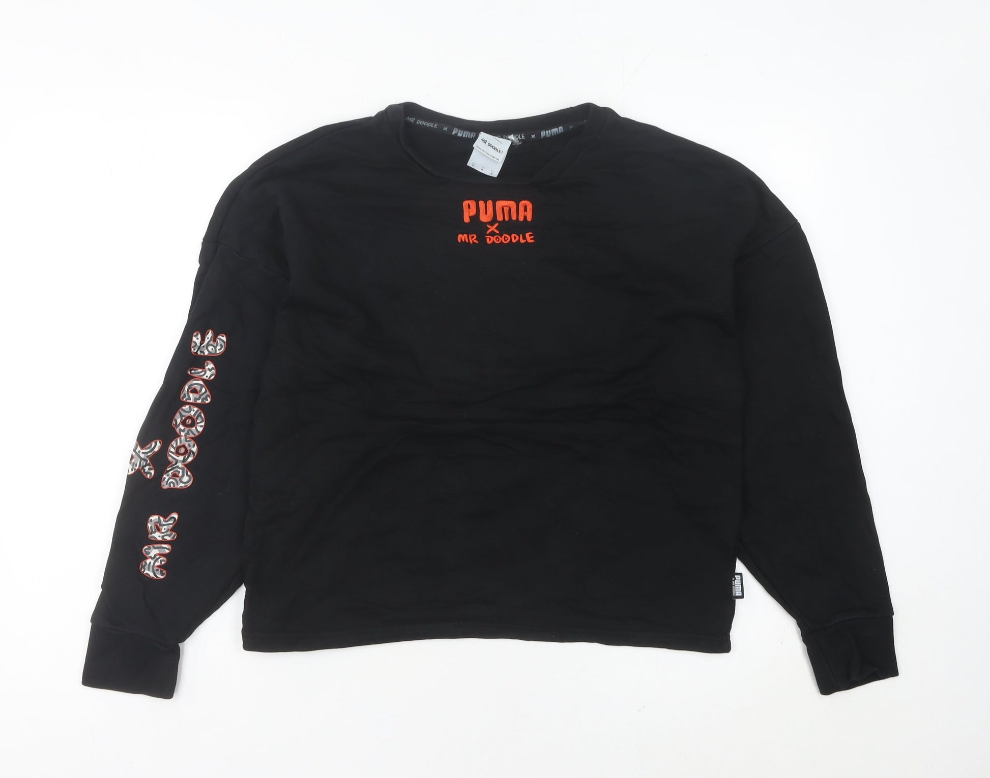 PUMA x Mr Doodle Women's Black Sweatshirt UK 12 Graphic Print Pullover