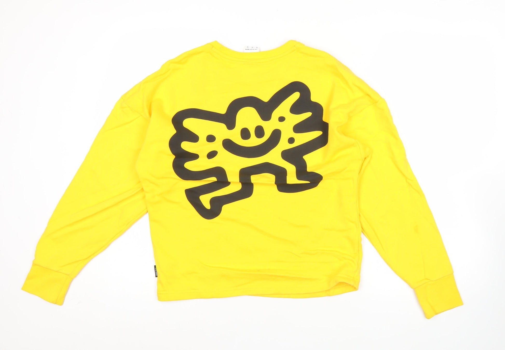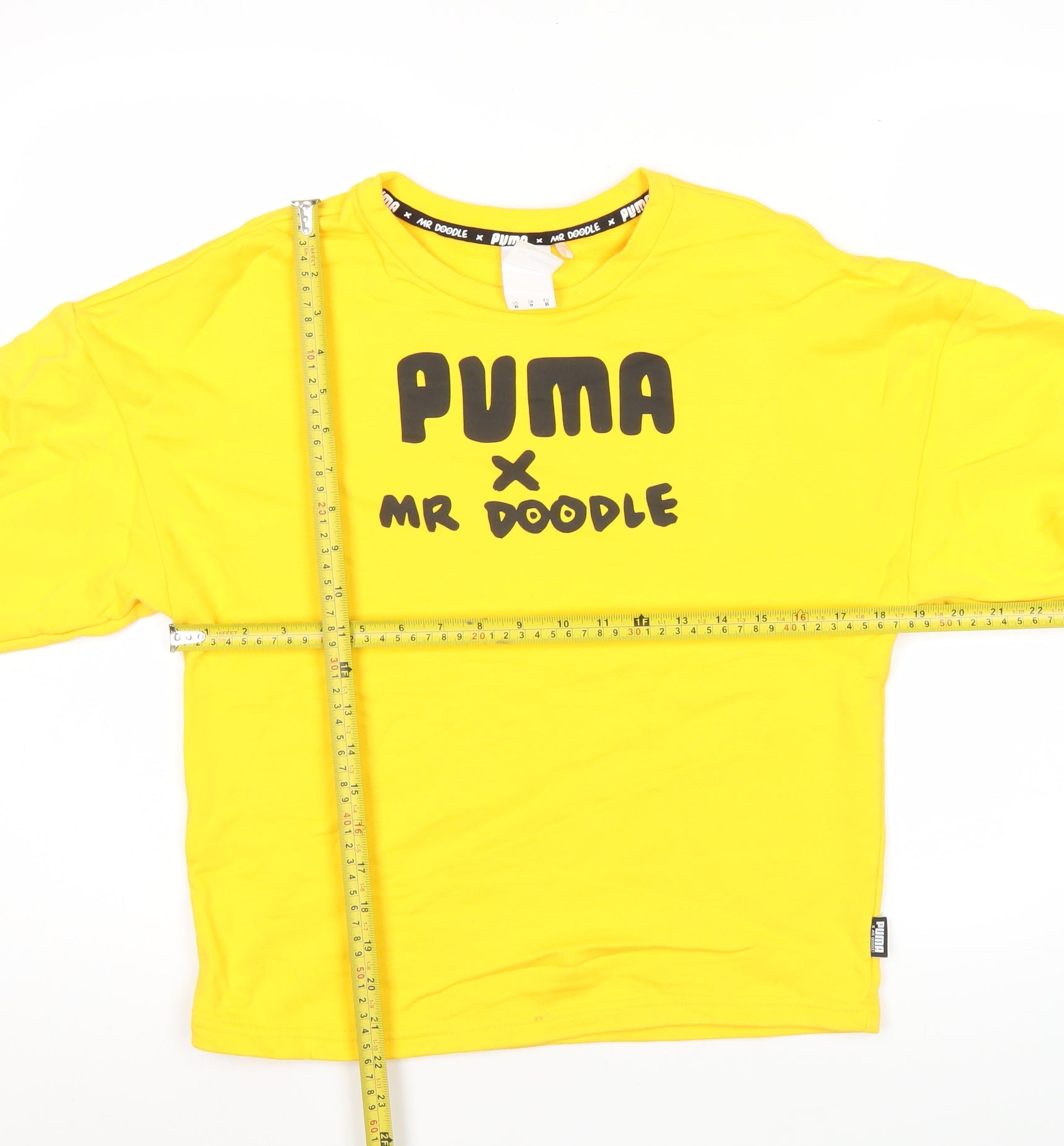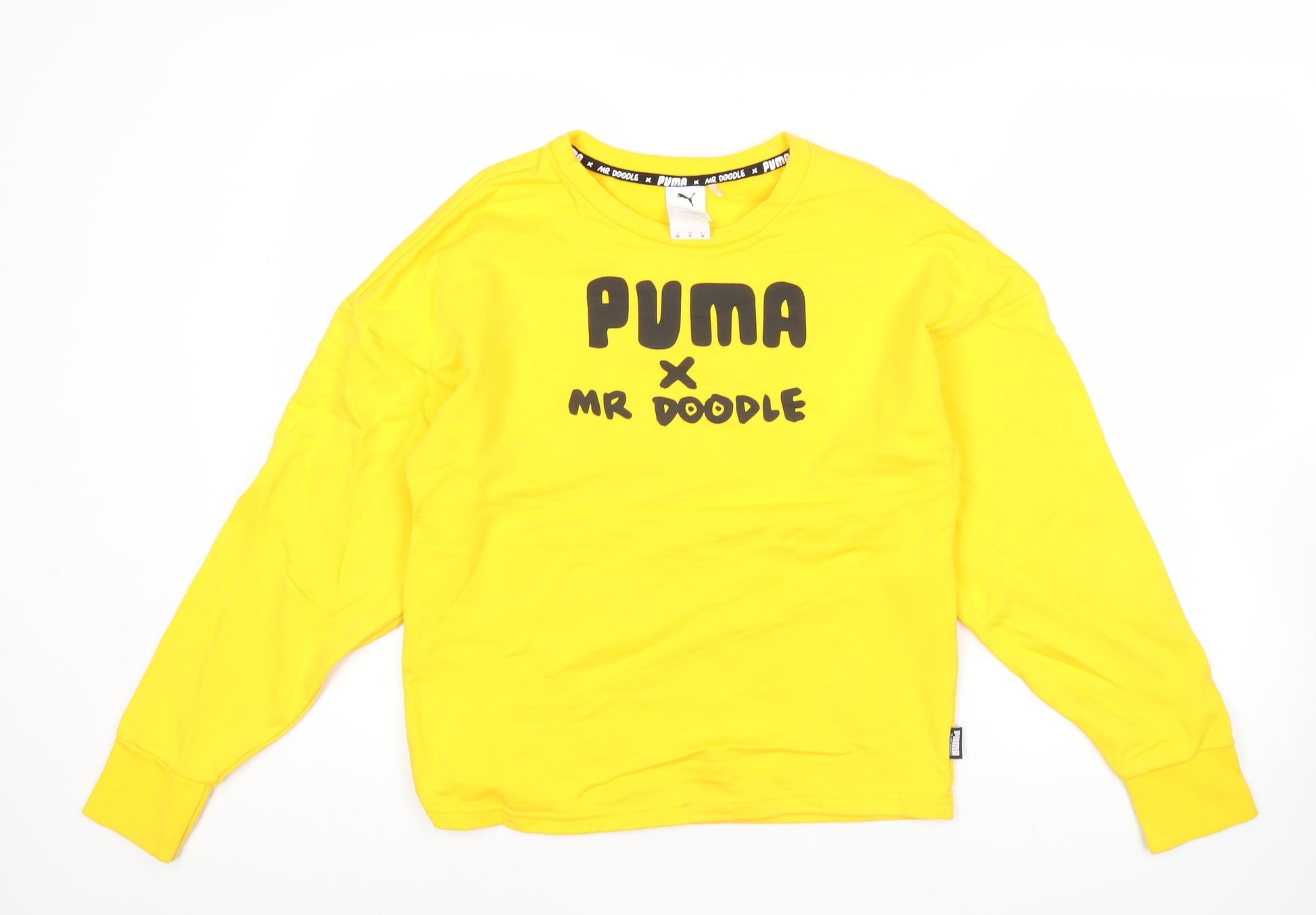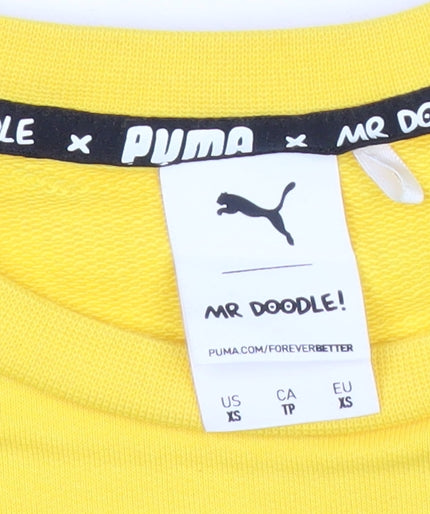 Puma x Mr Doodle Yellow Graphic Unisex Adults XS Pullover Sweatshirt