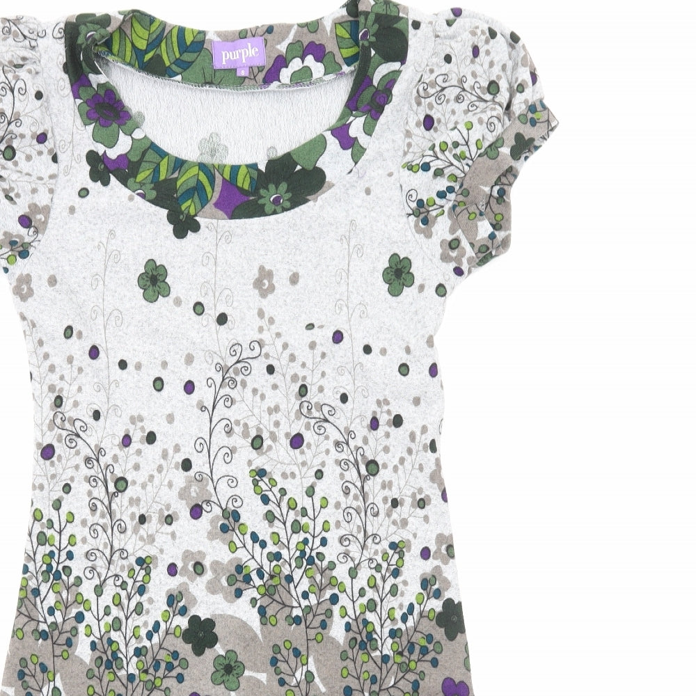Purple Womens Grey Floral Polyester Trapeze & Swing Size S Round Neck Pullover