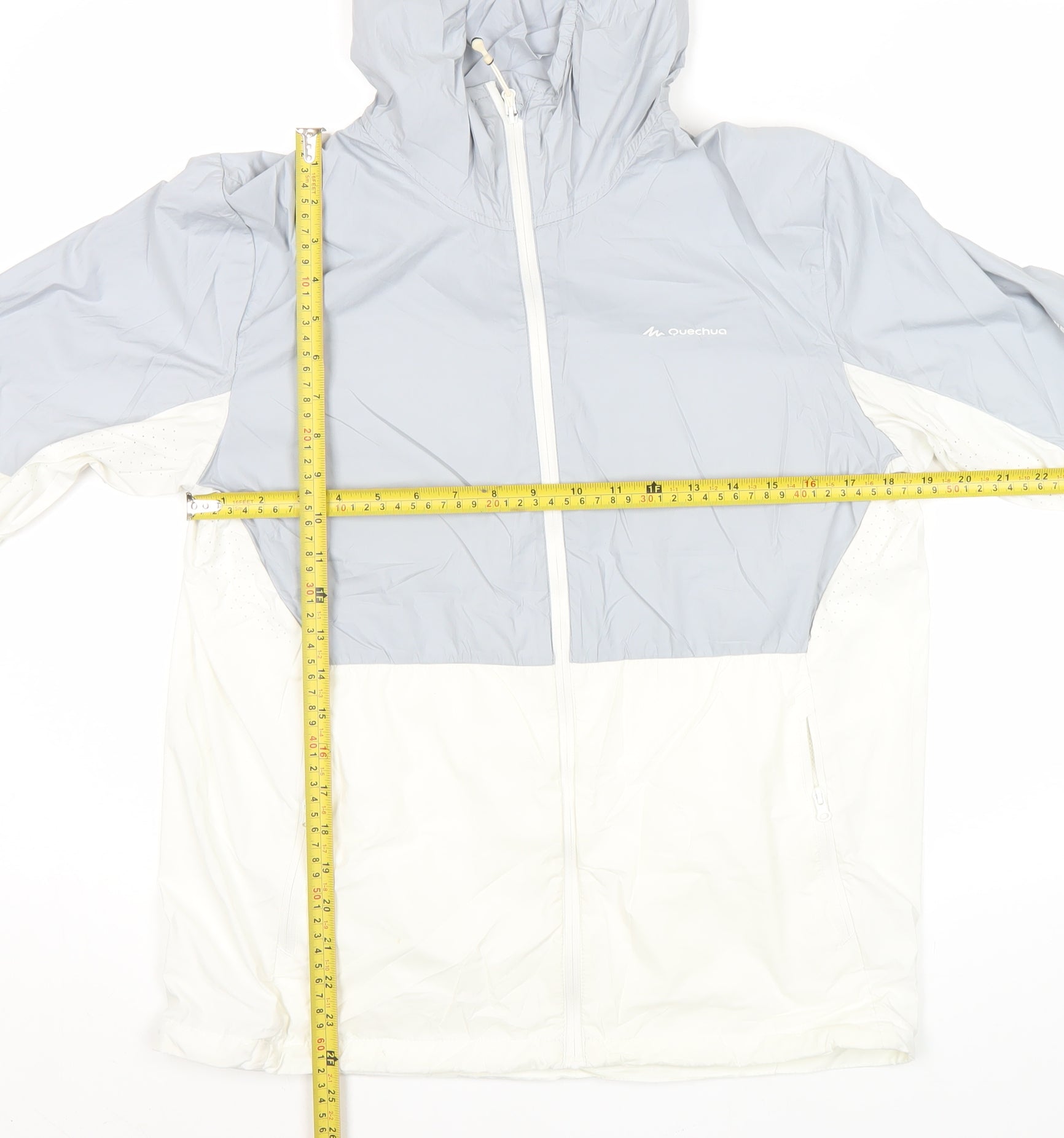 Quechua Women’s Grey White Windbreaker Jacket Size 16 Hooded