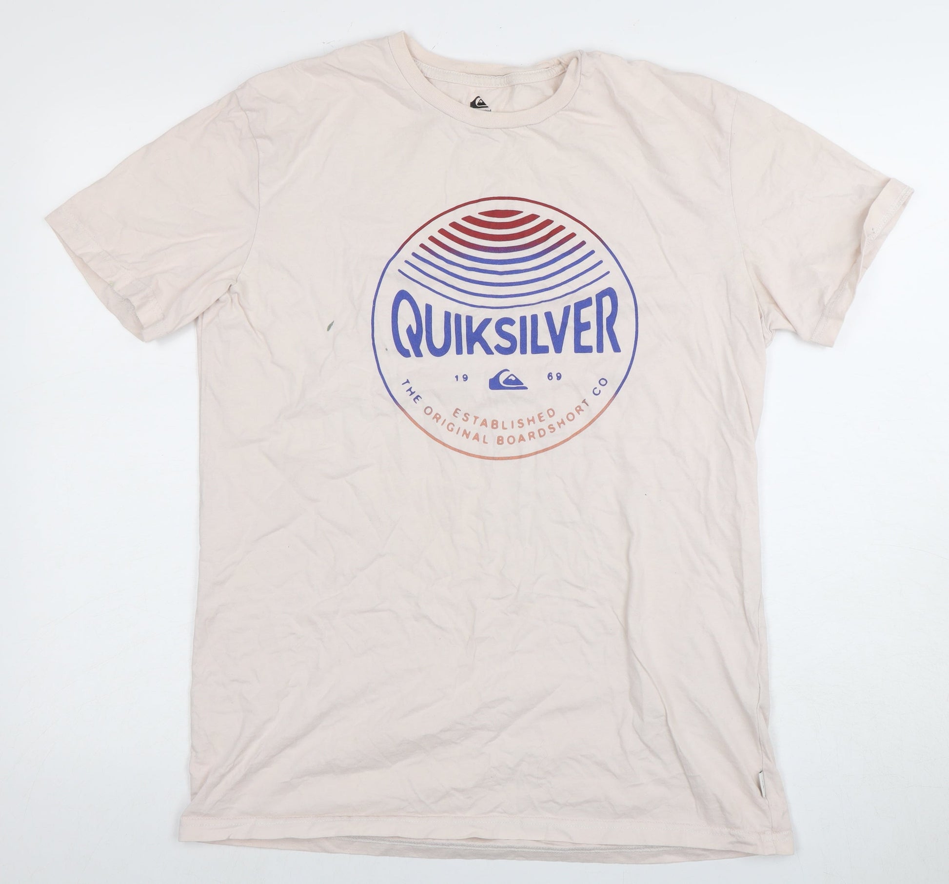 Quiksilver Men's Beige Graphic Print T-Shirt - Large