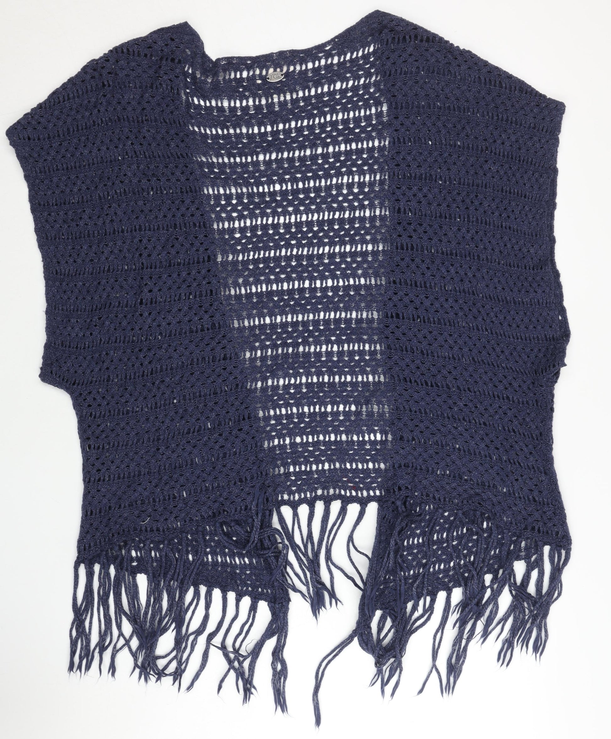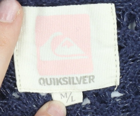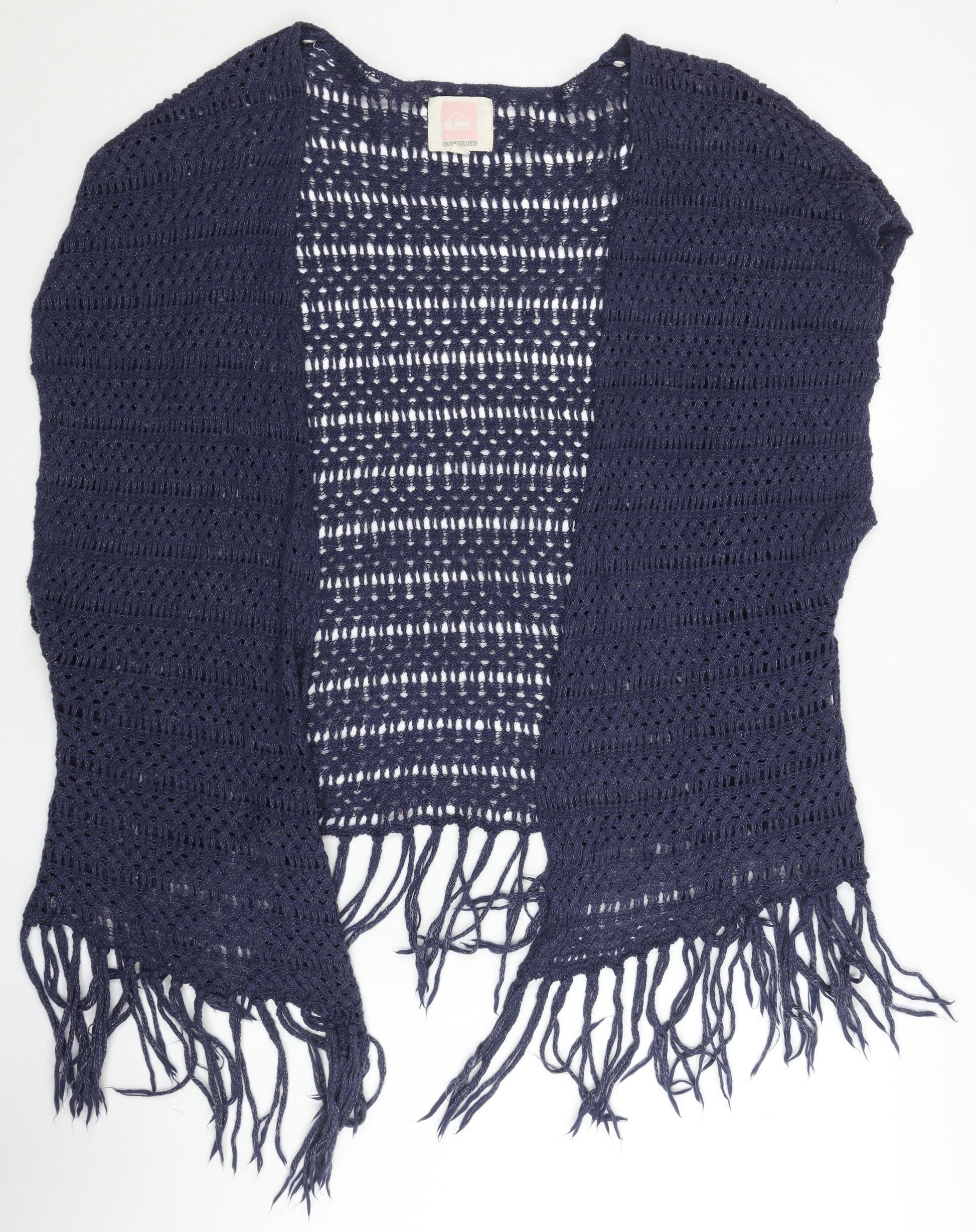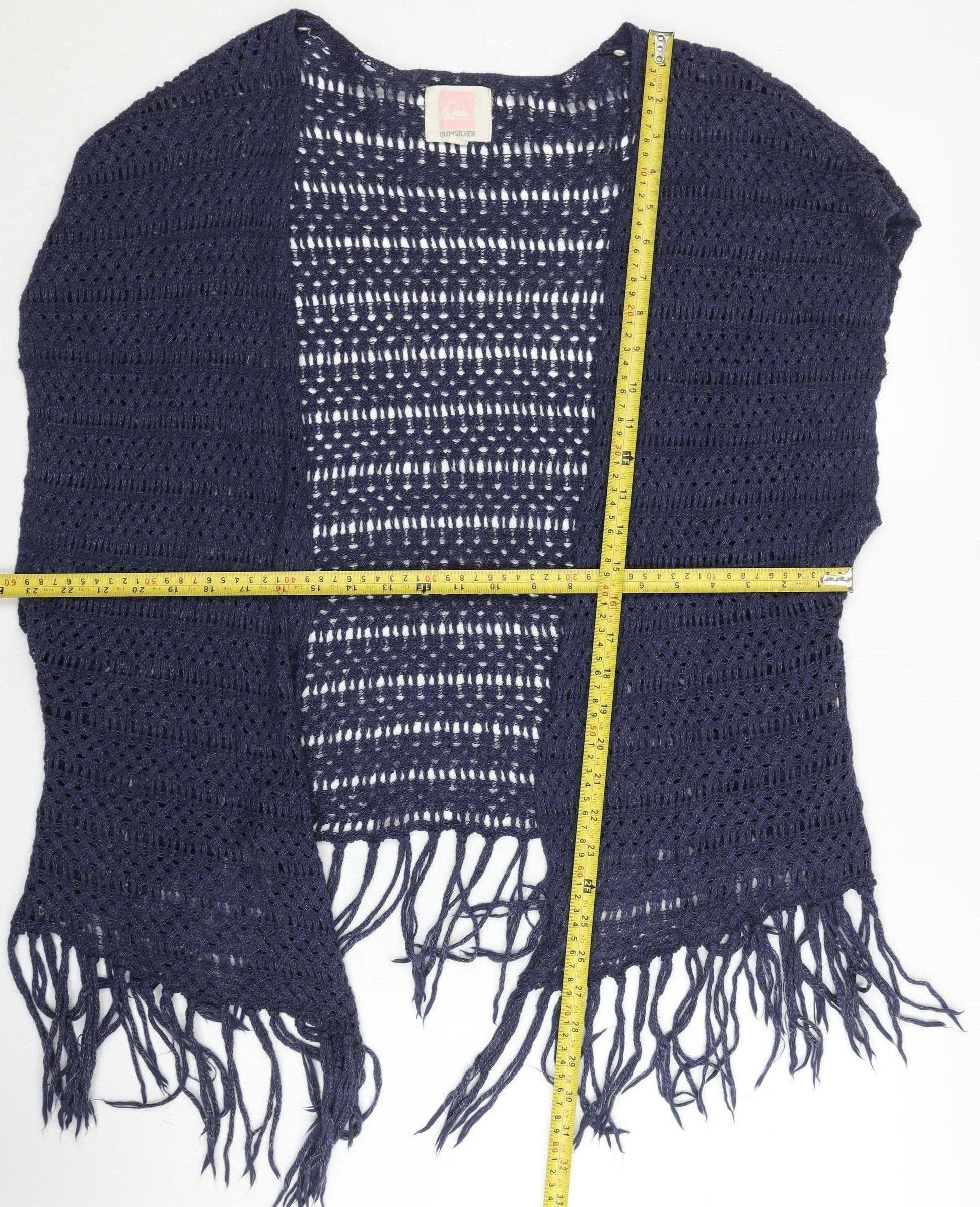 Quiksilver Womens Blue Open-Knit Crochet Shrug M Boho Fringe Beachwear