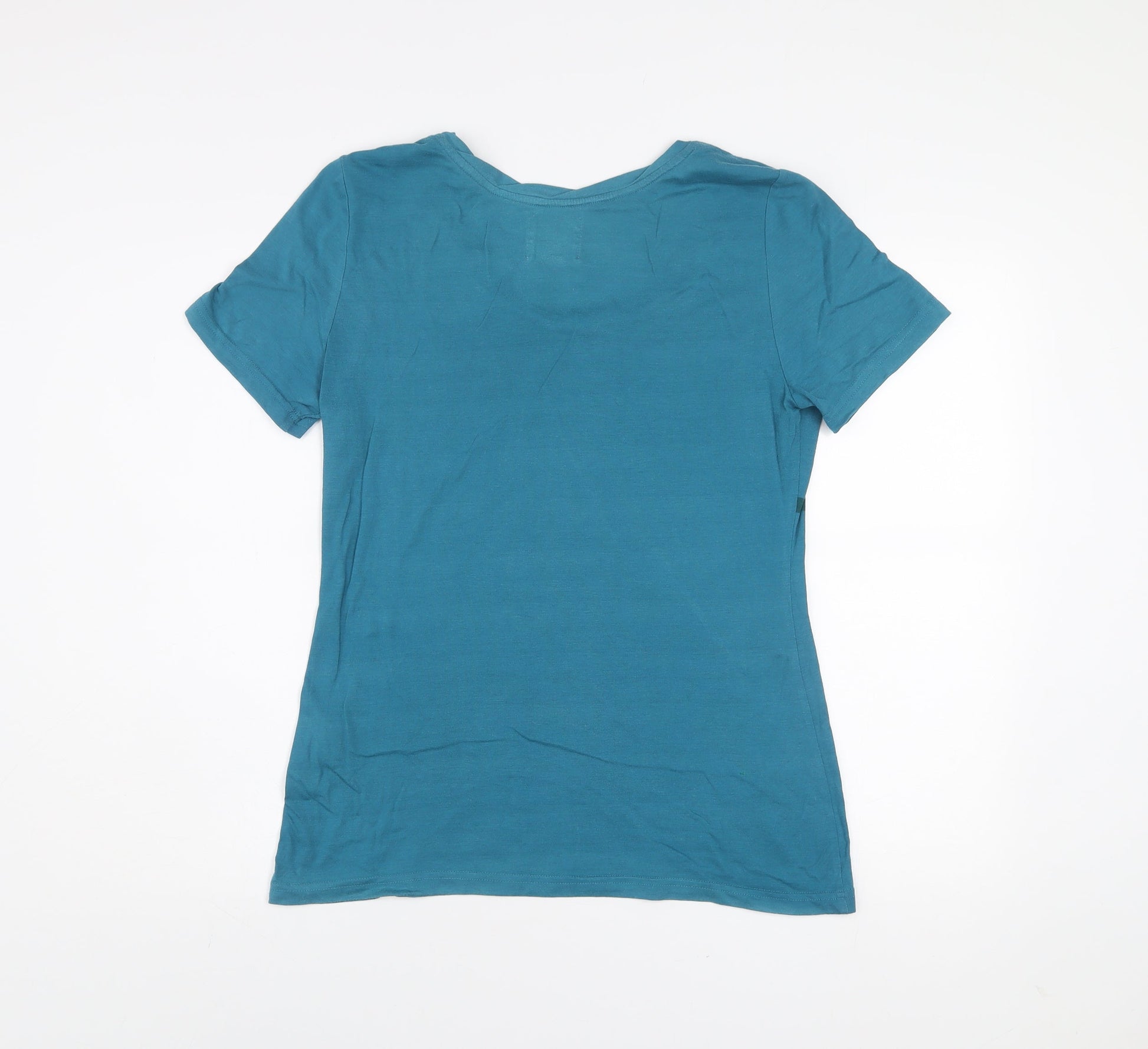 Quiksilver Women's Blue Scoop Neck Cotton Blend T-Shirt L
