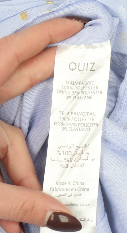 Quiz Women Blue Polka Dot Hi-Low Ruffle Wrap Dress Size 14