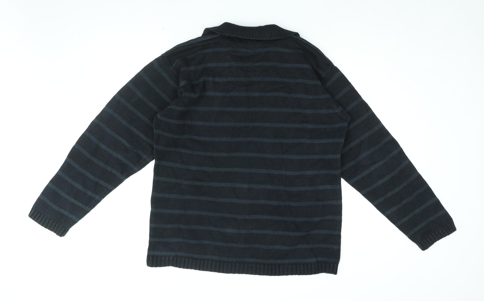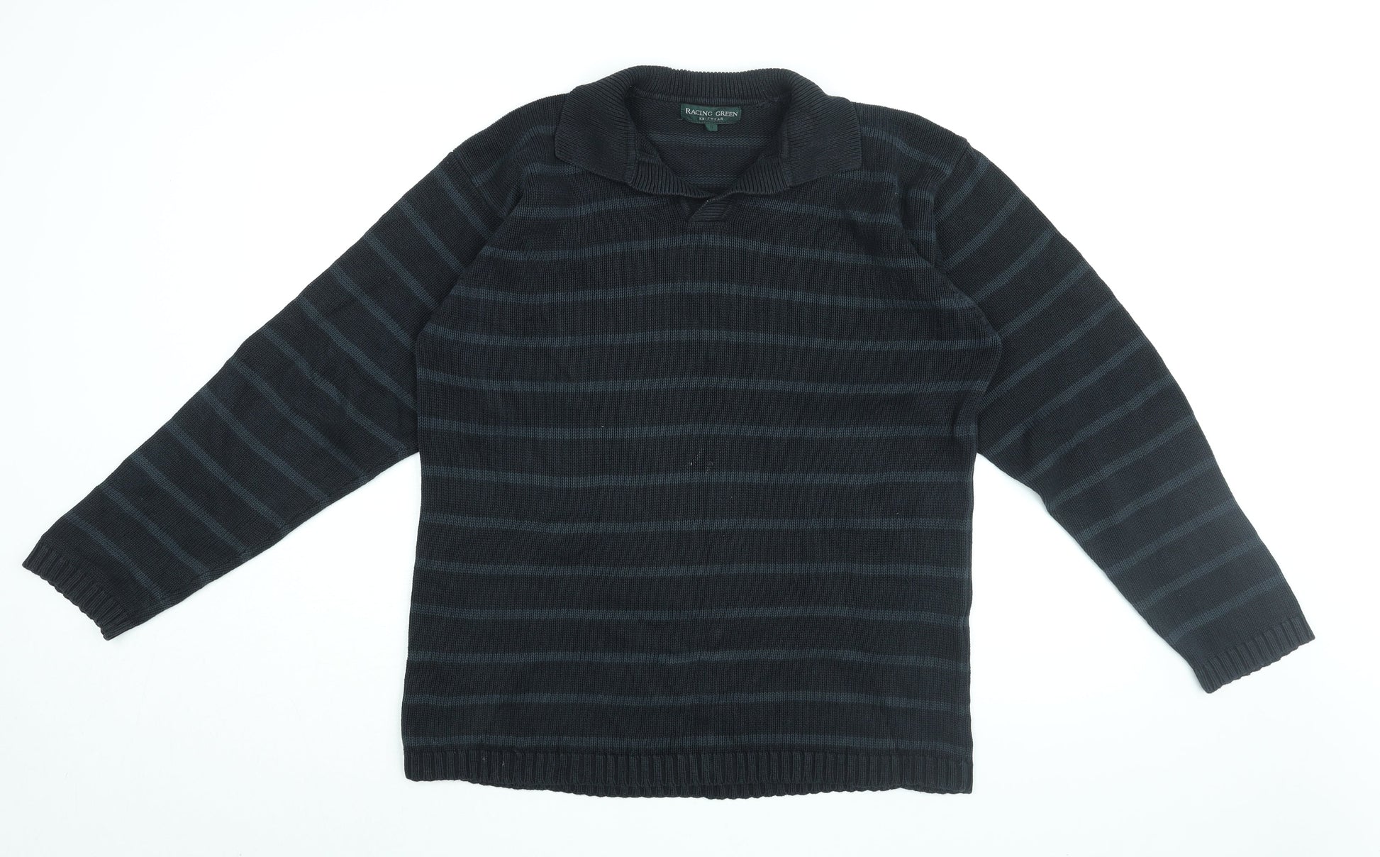 Racing Green Mens Black Collared Striped Cotton Pullover Jumper Size S Long Sleeve