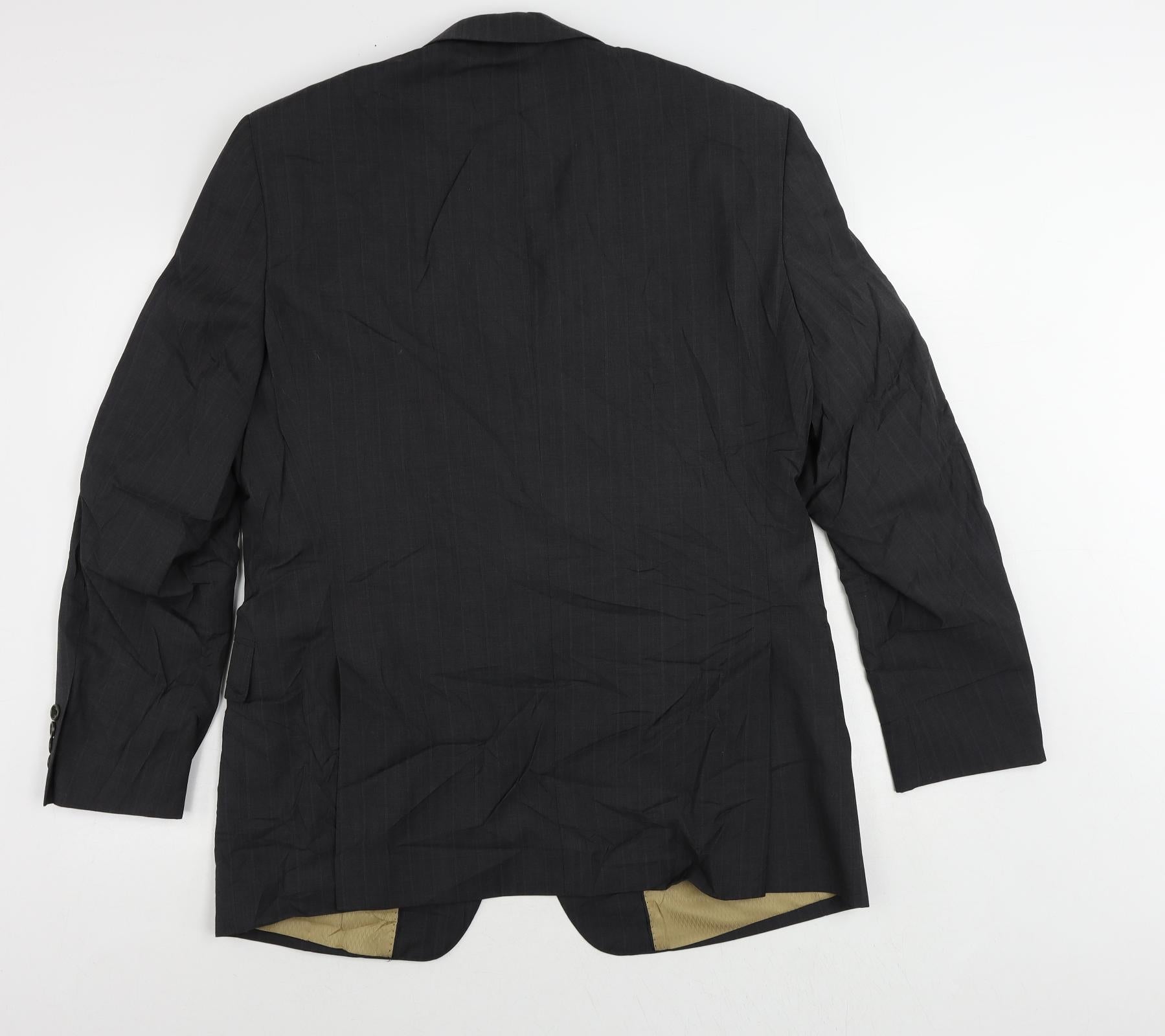Racing Green Mens Black Striped Wool Jacket Suit Jacket Size 42 Regular