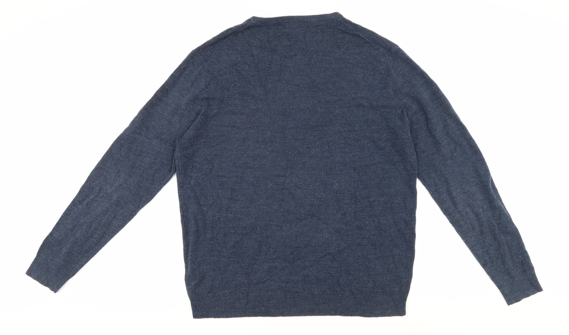 Racing Green Men's Blue Acrylic V-Neck Pullover L