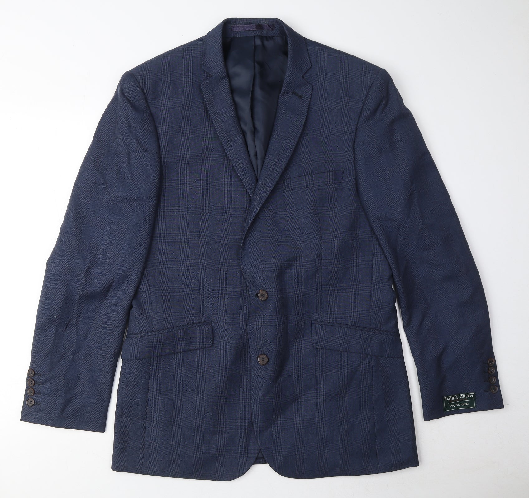 Racing Green Mens Blue Check Wool Jacket Suit Jacket Size 40 Regular