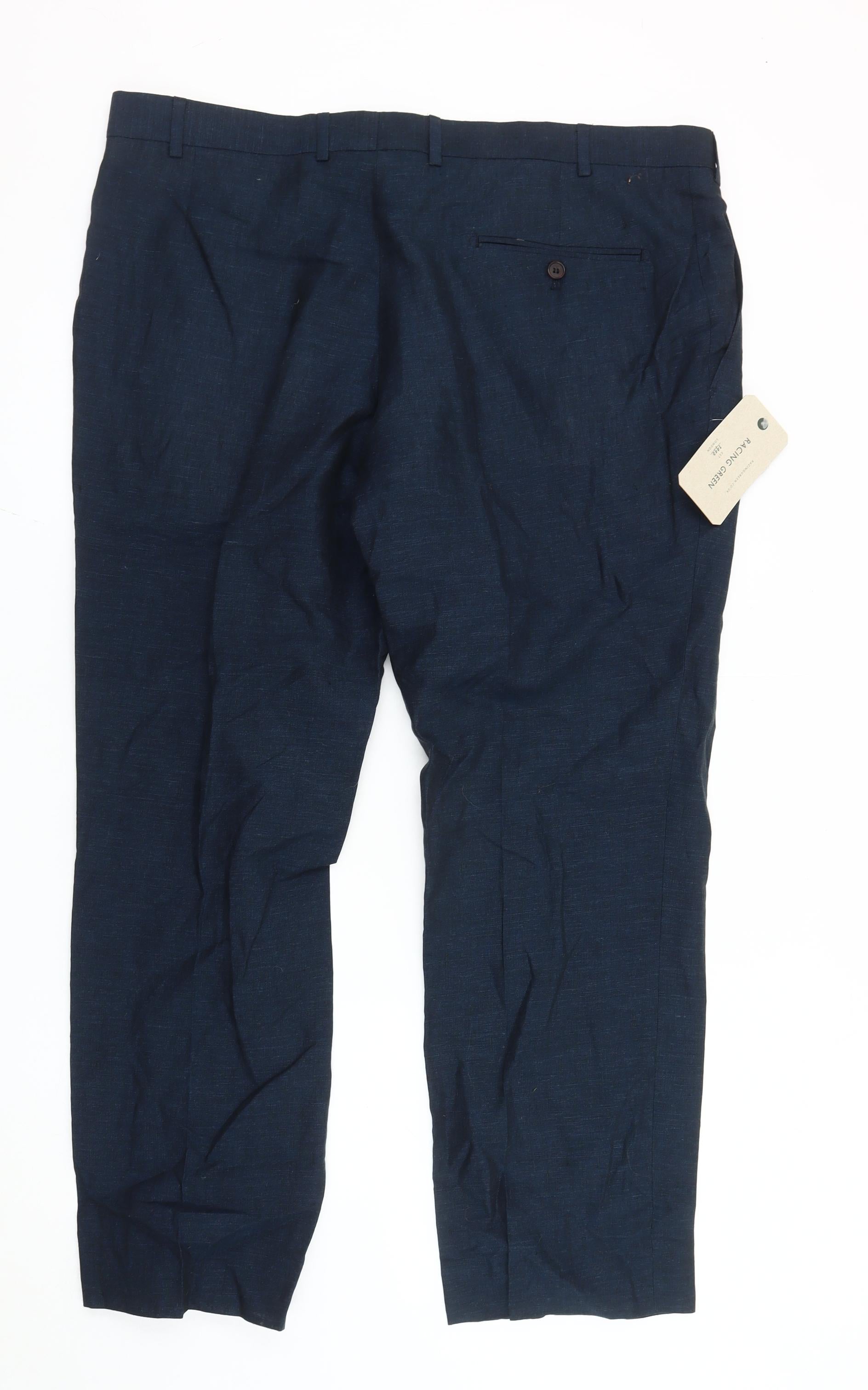 Racing Green Men's Blue Linen Cotton Chino Trousers 40in Waist