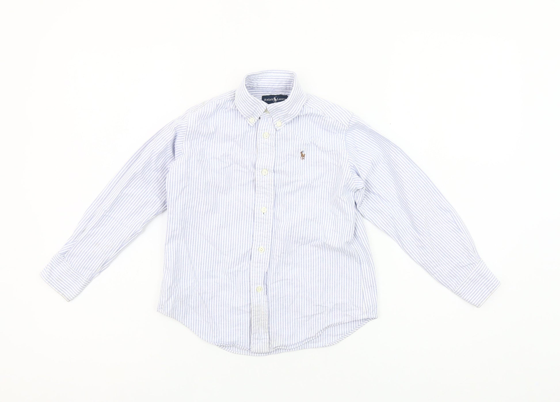 Ralph Lauren Boys Blue Striped Button-Down Long Sleeve Cotton Shirt 4 Years