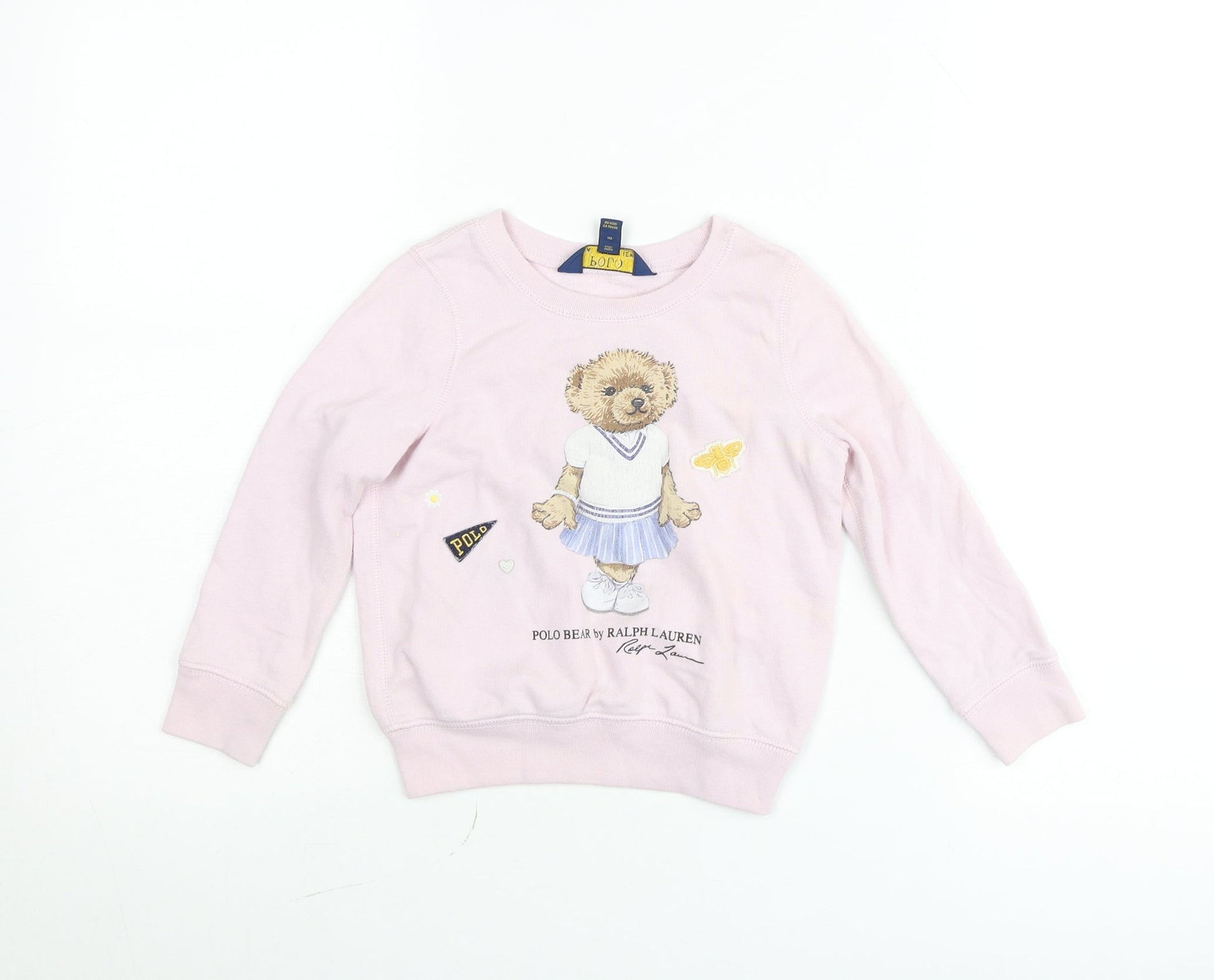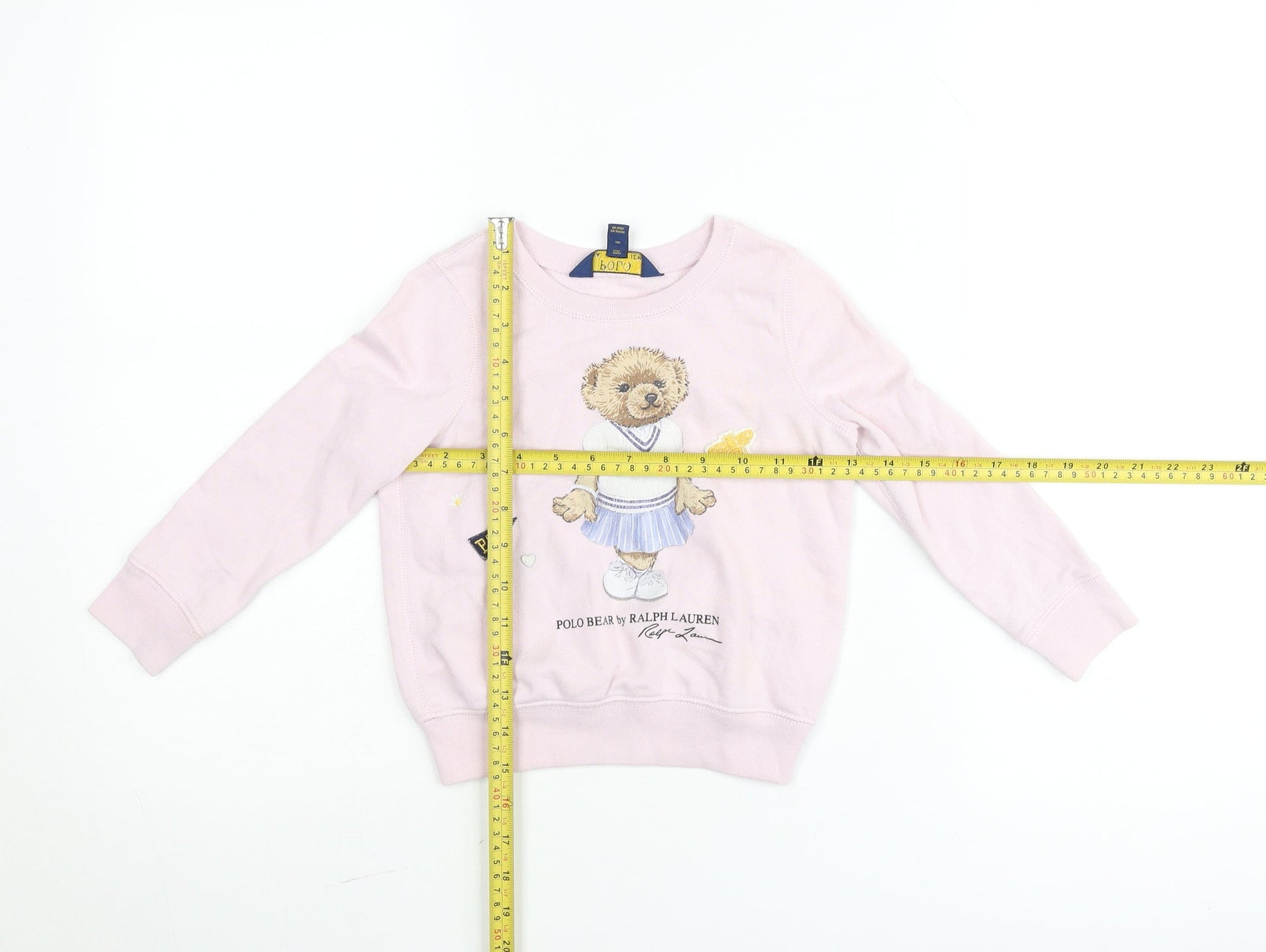 Ralph Lauren Girls Pink Polo Bear Pullover Jumper Size 4 Plus