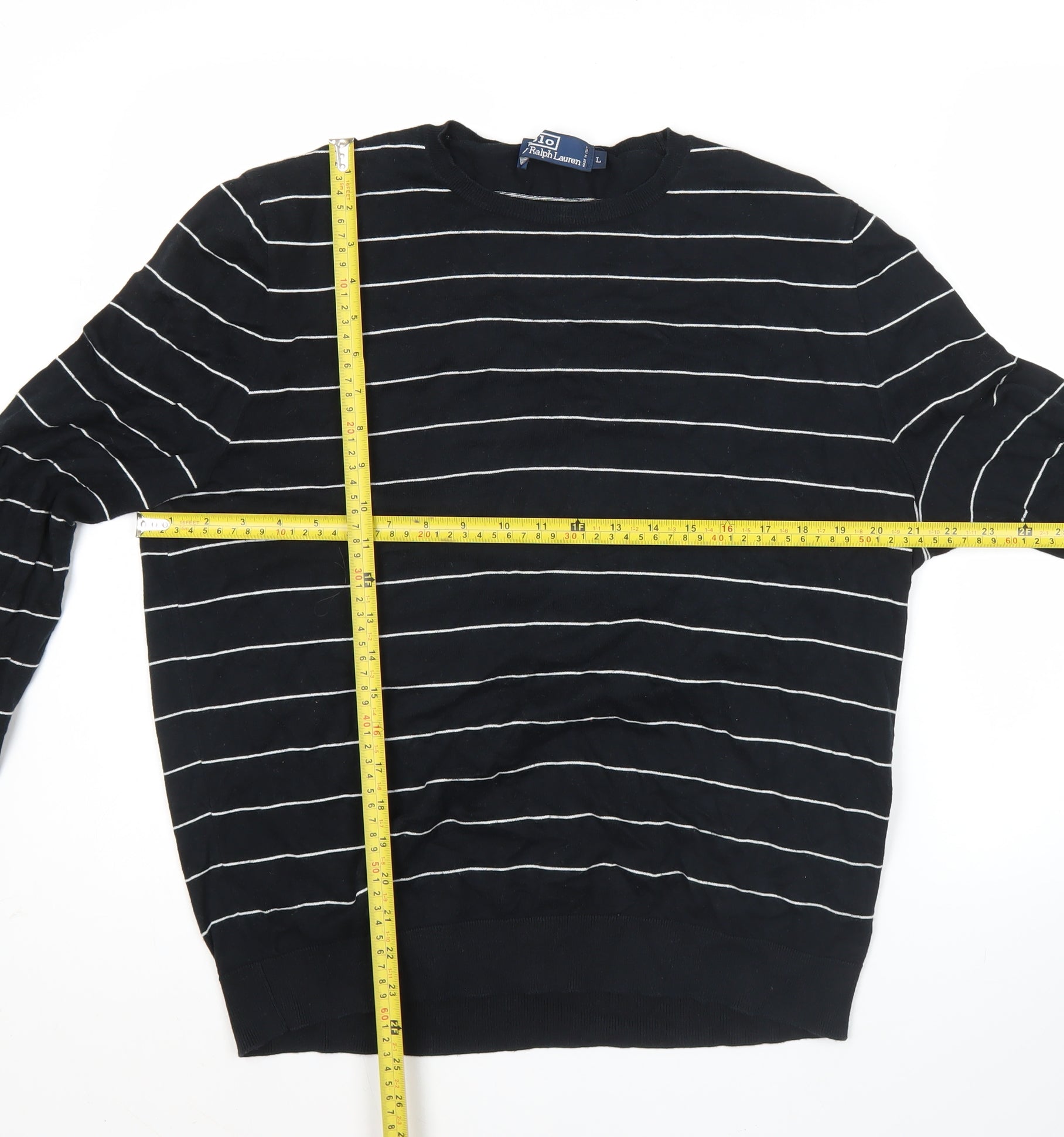 Ralph Lauren Men’s Black Striped Cotton Pullover Jumper L