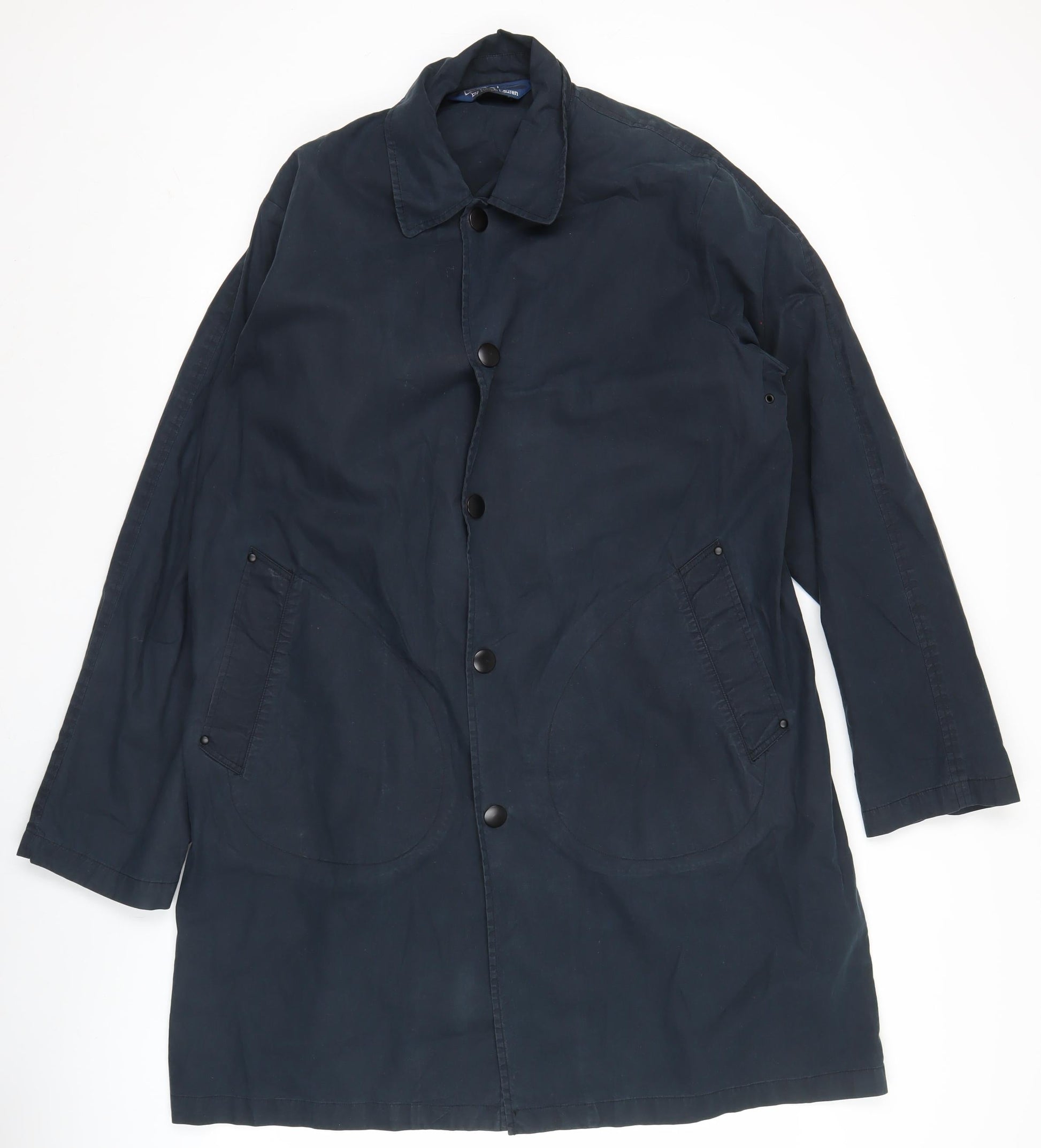 Ralph Lauren Men’s Blue Cotton Overcoat Size M Long Classic Style