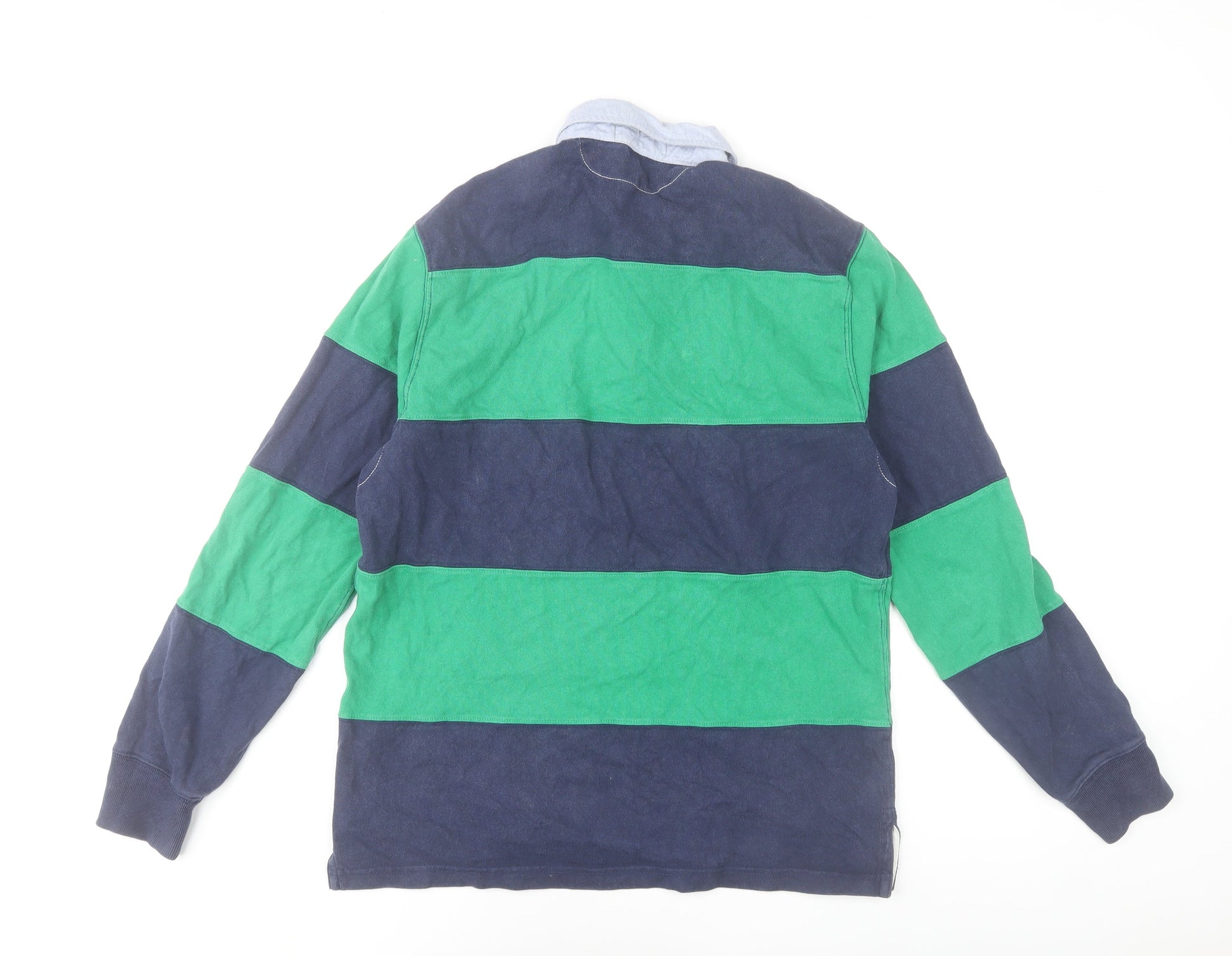 Ralph Lauren Men's Blue Green Striped Long Sleeve Rugby Polo Shirt Size S