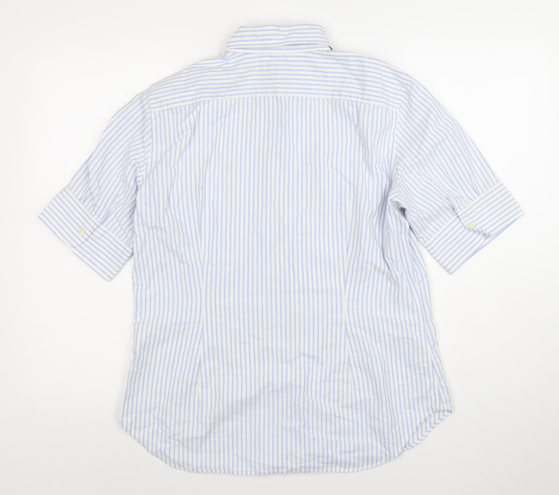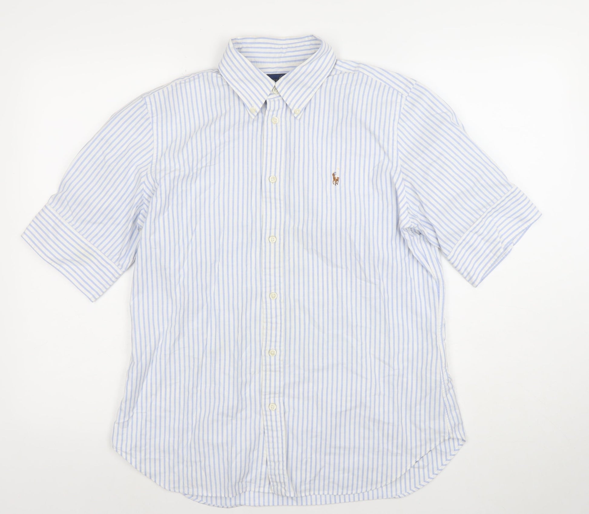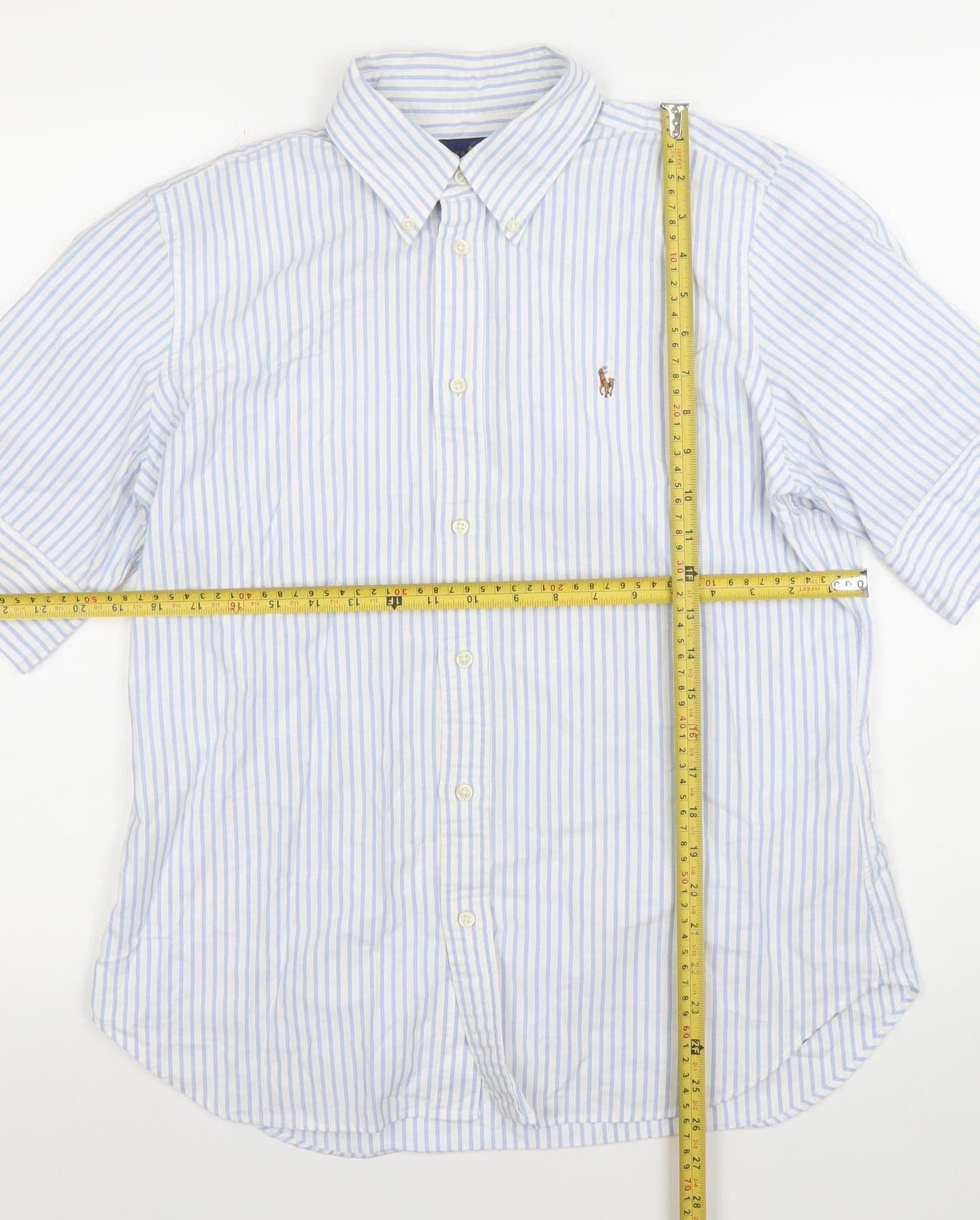 Ralph Lauren Men's Blue Slim Fit Striped Cotton Short Sleeve Shirt Size L