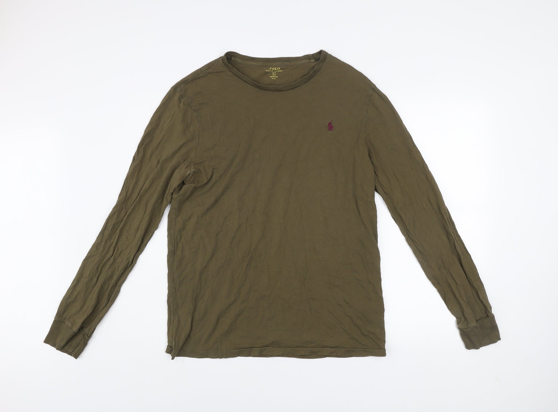 Ralph Lauren Men's Green Long Sleeve Slim Fit Cotton Top Size L