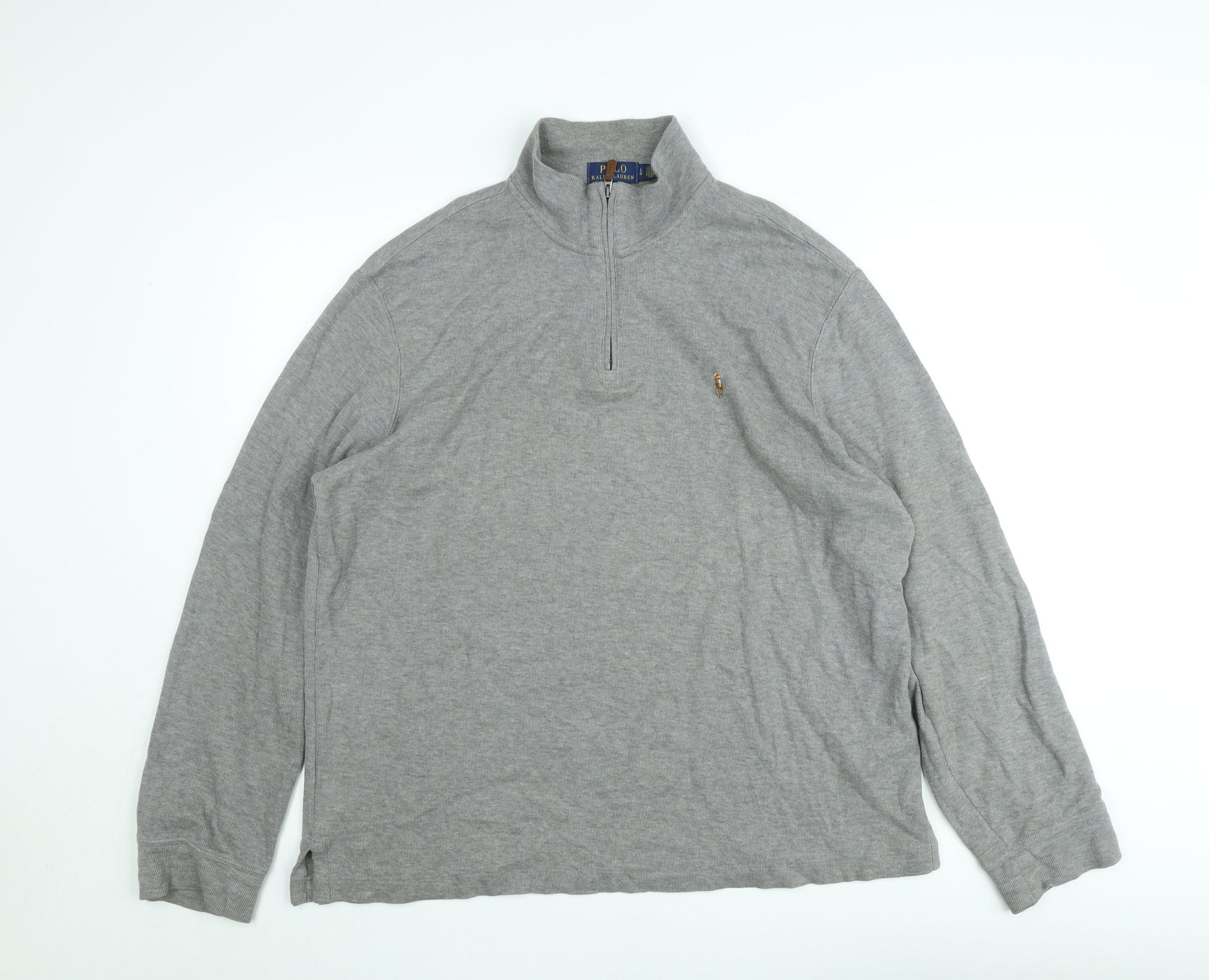 Ralph Lauren Men's Grey 1/4 Zip Long Sleeve Cotton Sweatshirt L