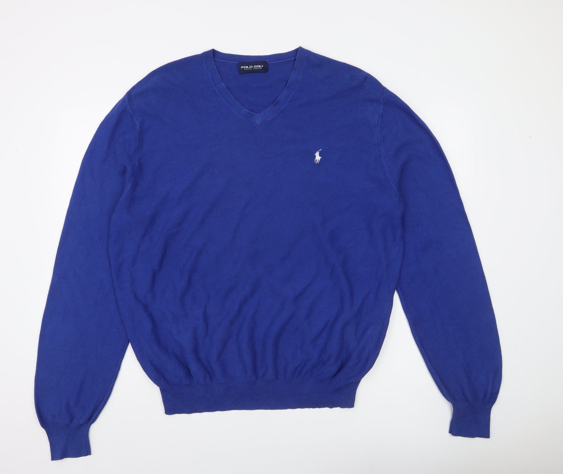 Ralph Lauren Polo Golf Men's Blue Cotton V-Neck Jumper XL