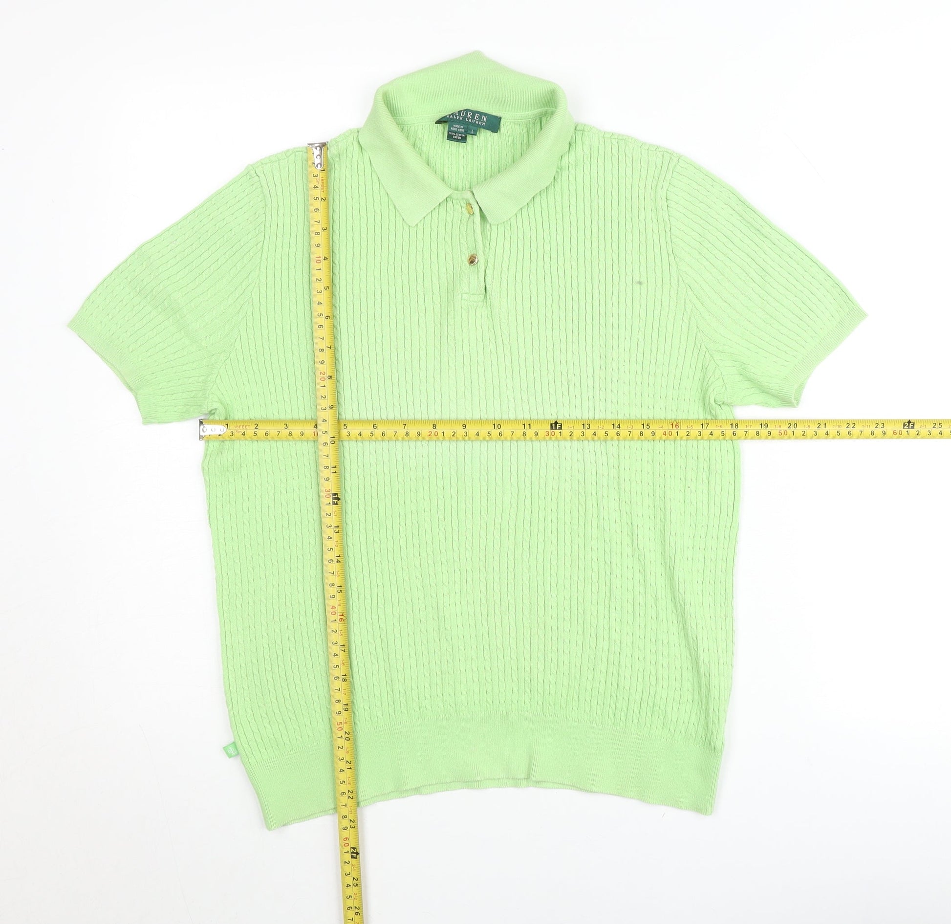 Ralph Lauren Women Green Collared Short Sleeve Knit Henley Jumper L
