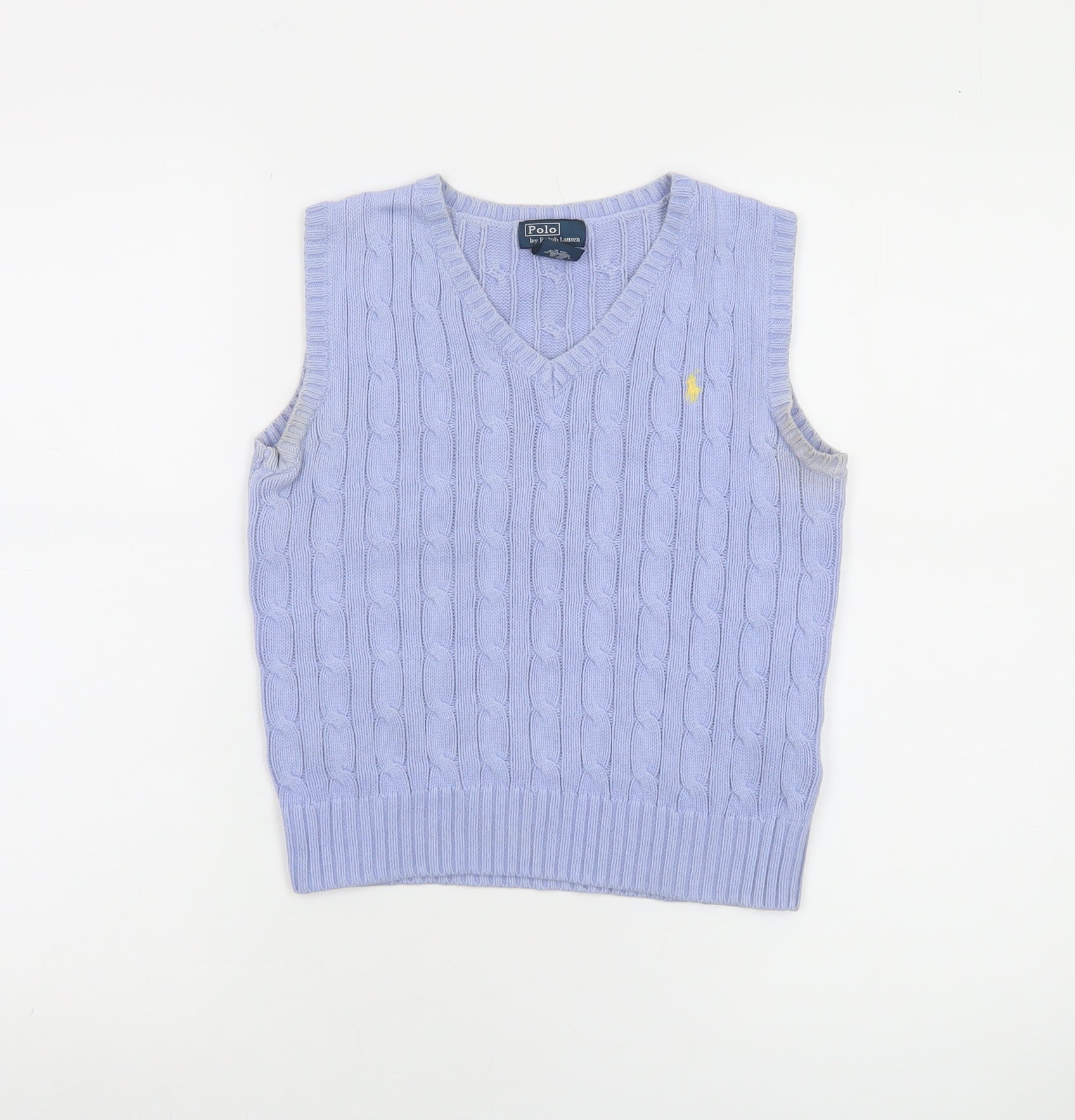 Ralph Lauren Women’s Purple Cotton Cable-Knit V-Neck Vest Size 6