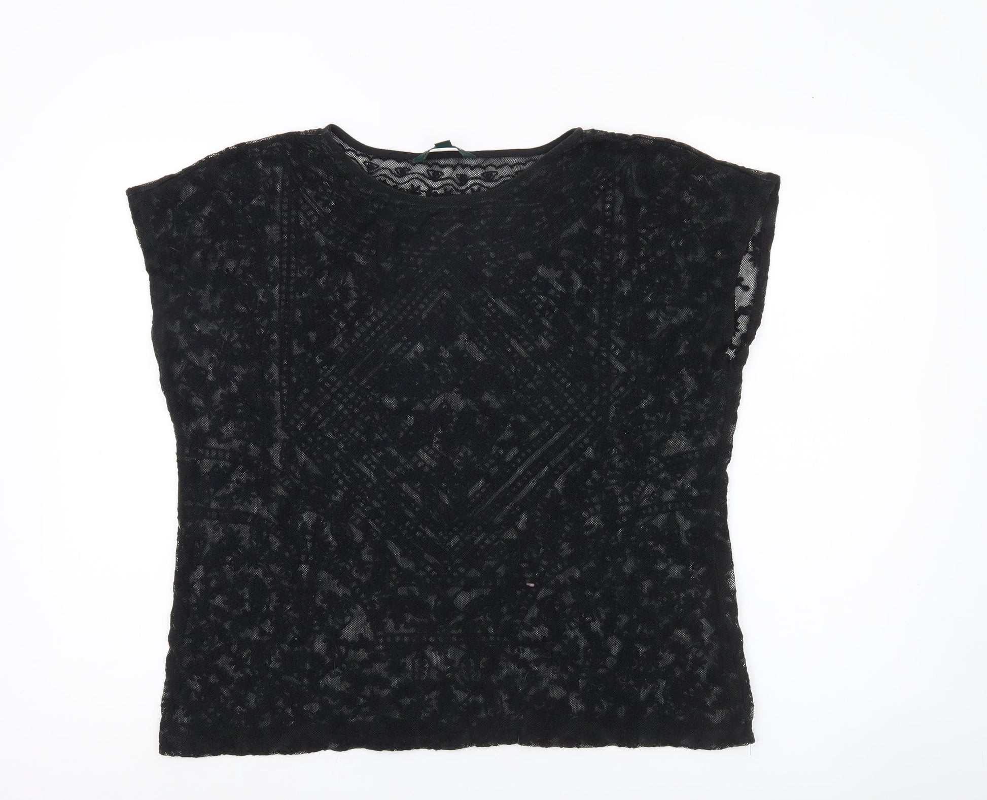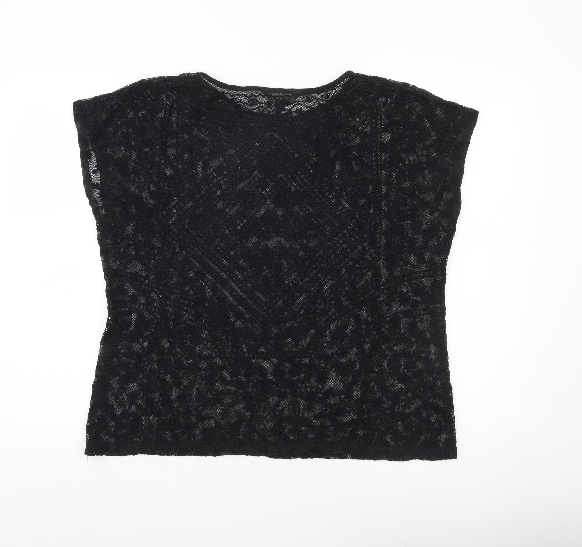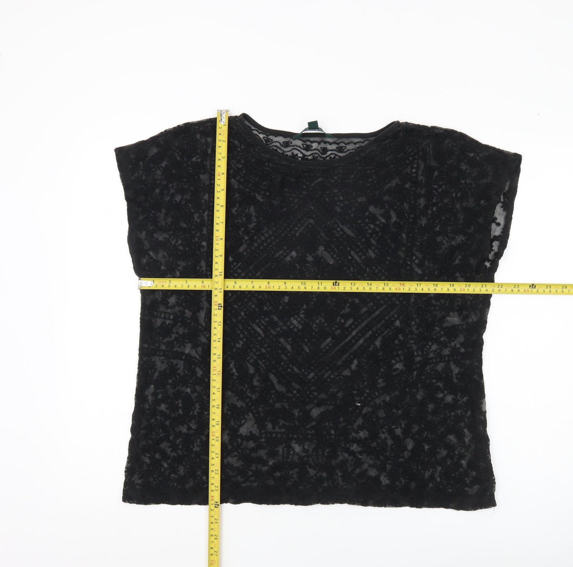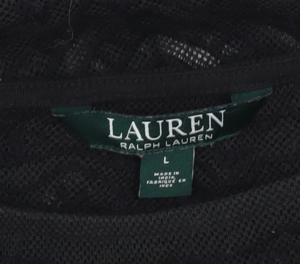 Ralph Lauren Womens Black Lace Velvet Blouse Size L Sleeveless
