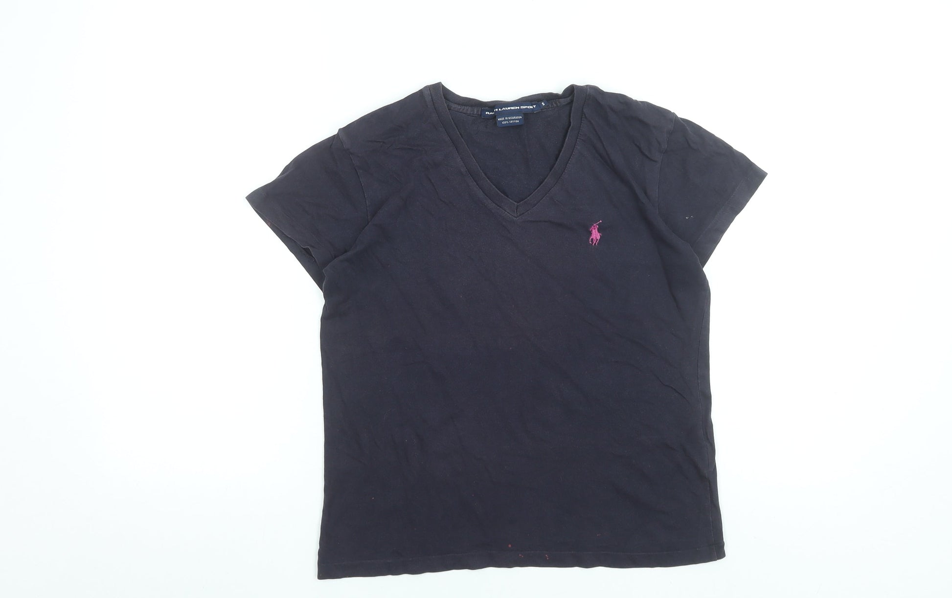Ralph Lauren Womens Black V-Neck Cotton T-Shirt Size S