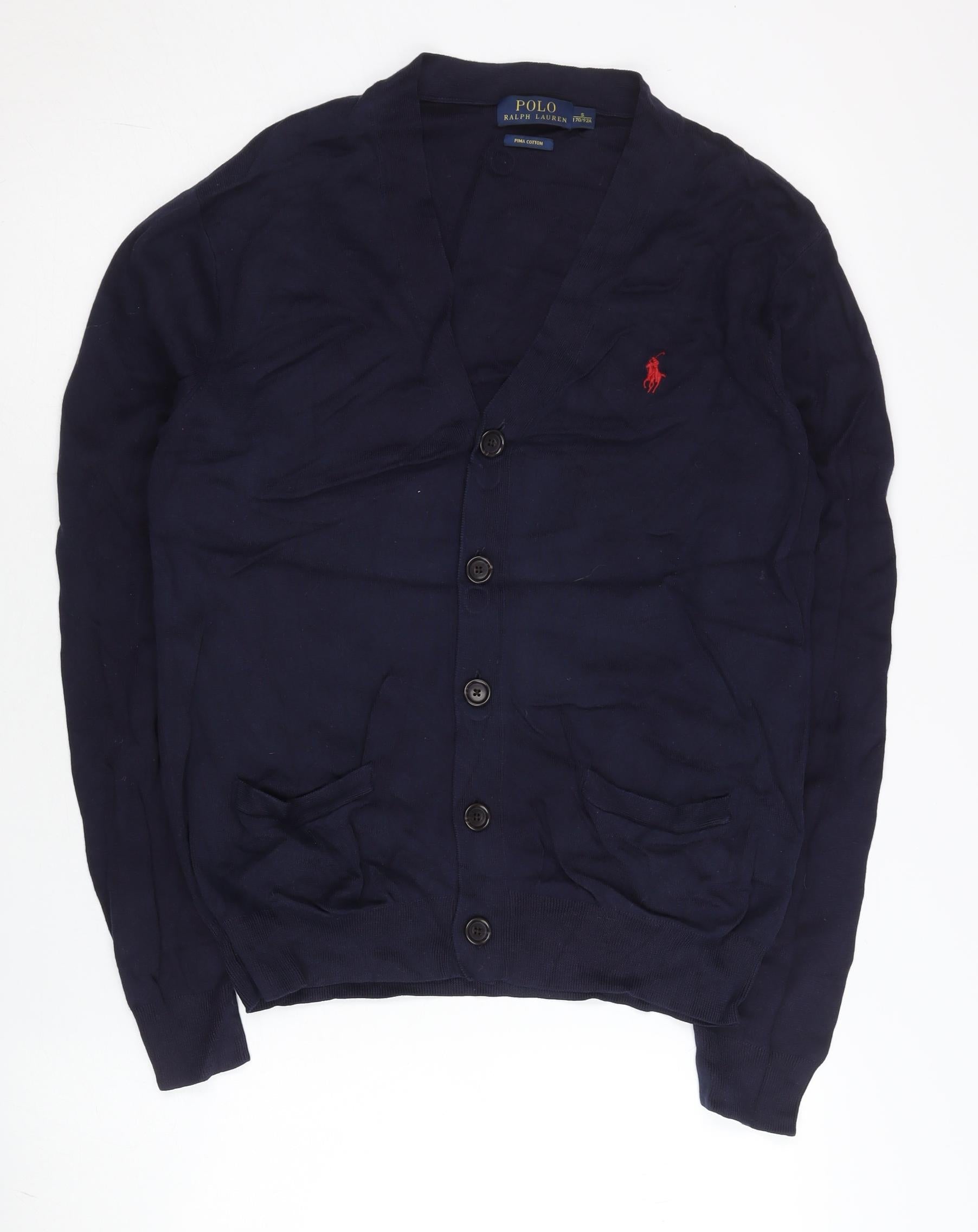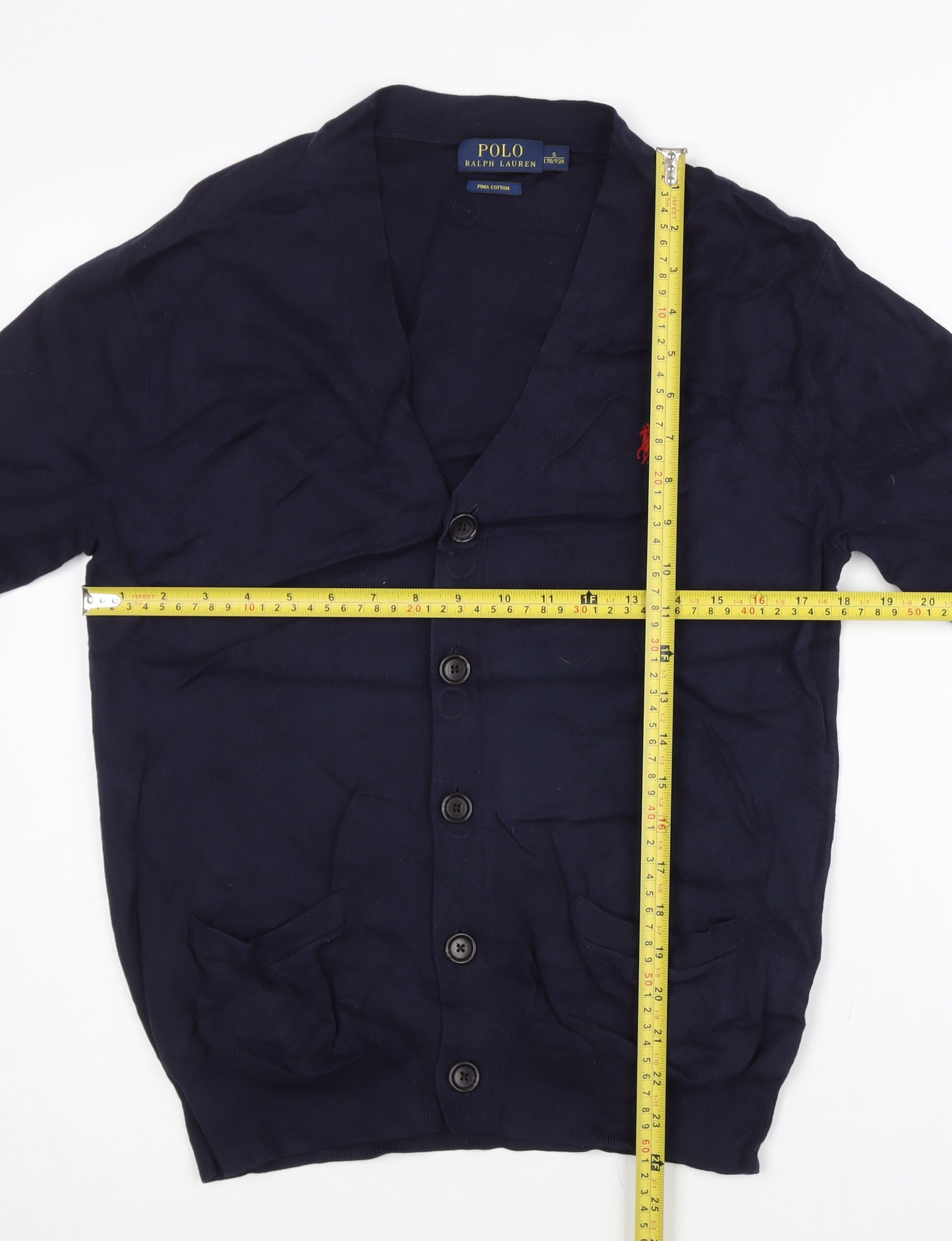 Ralph Lauren Women's Blue Cotton Cardigan S V-Neck Short Sleeve