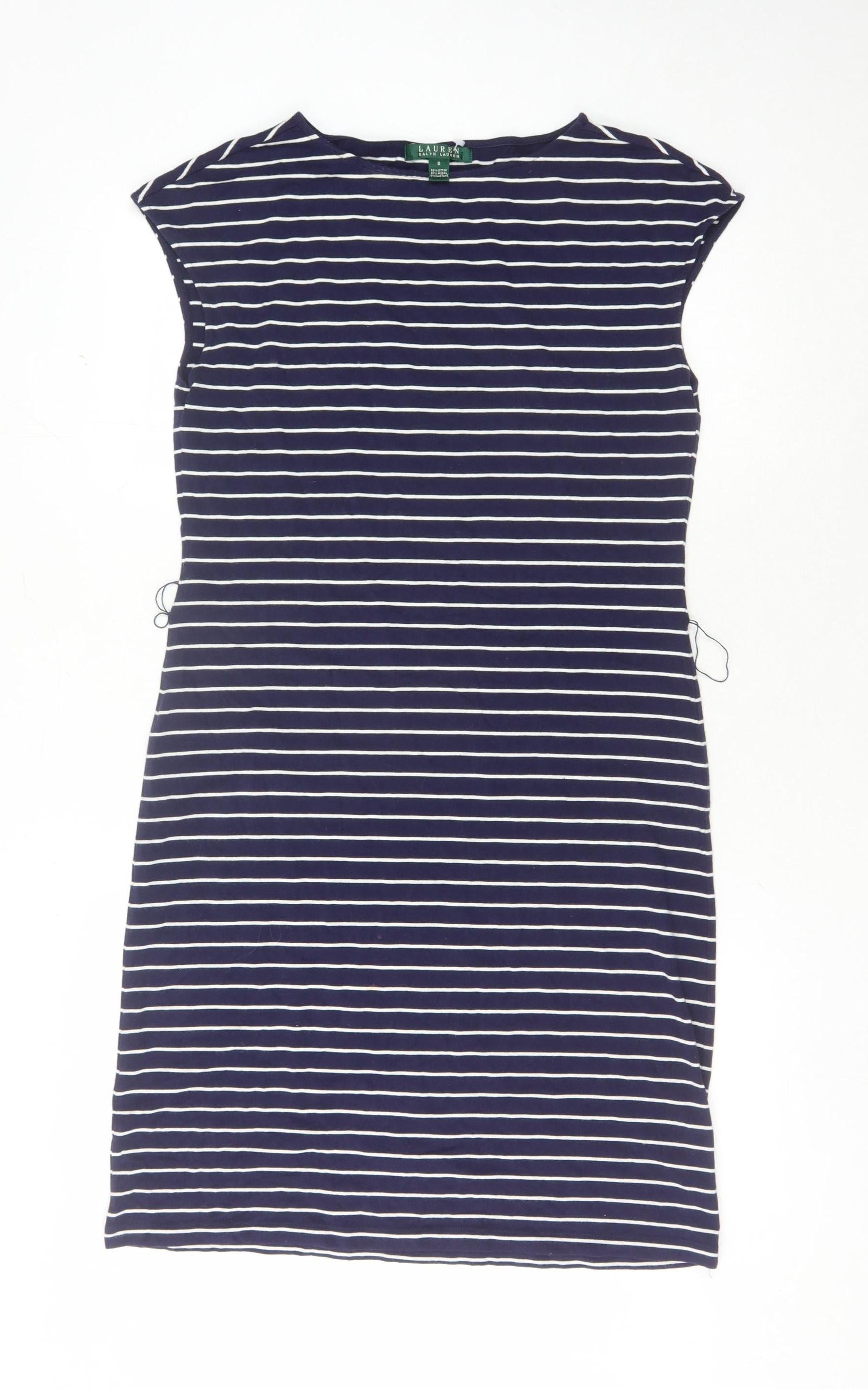 Ralph Lauren Women's Blue Striped Shift Dress Size S