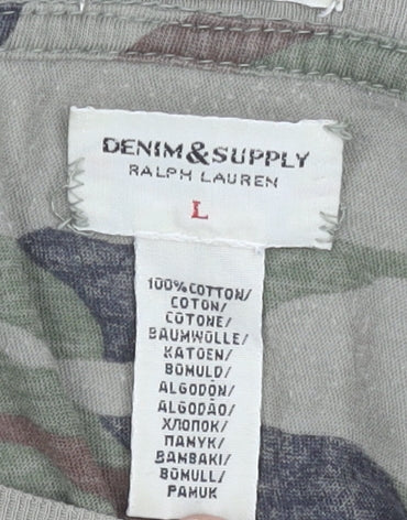 Ralph Lauren Women's Green Camouflage Skull Print Cotton T-Shirt Size L