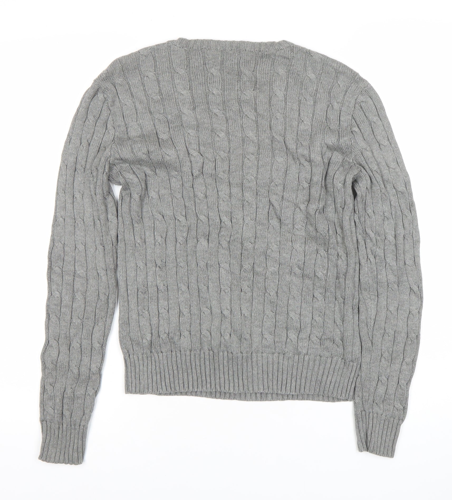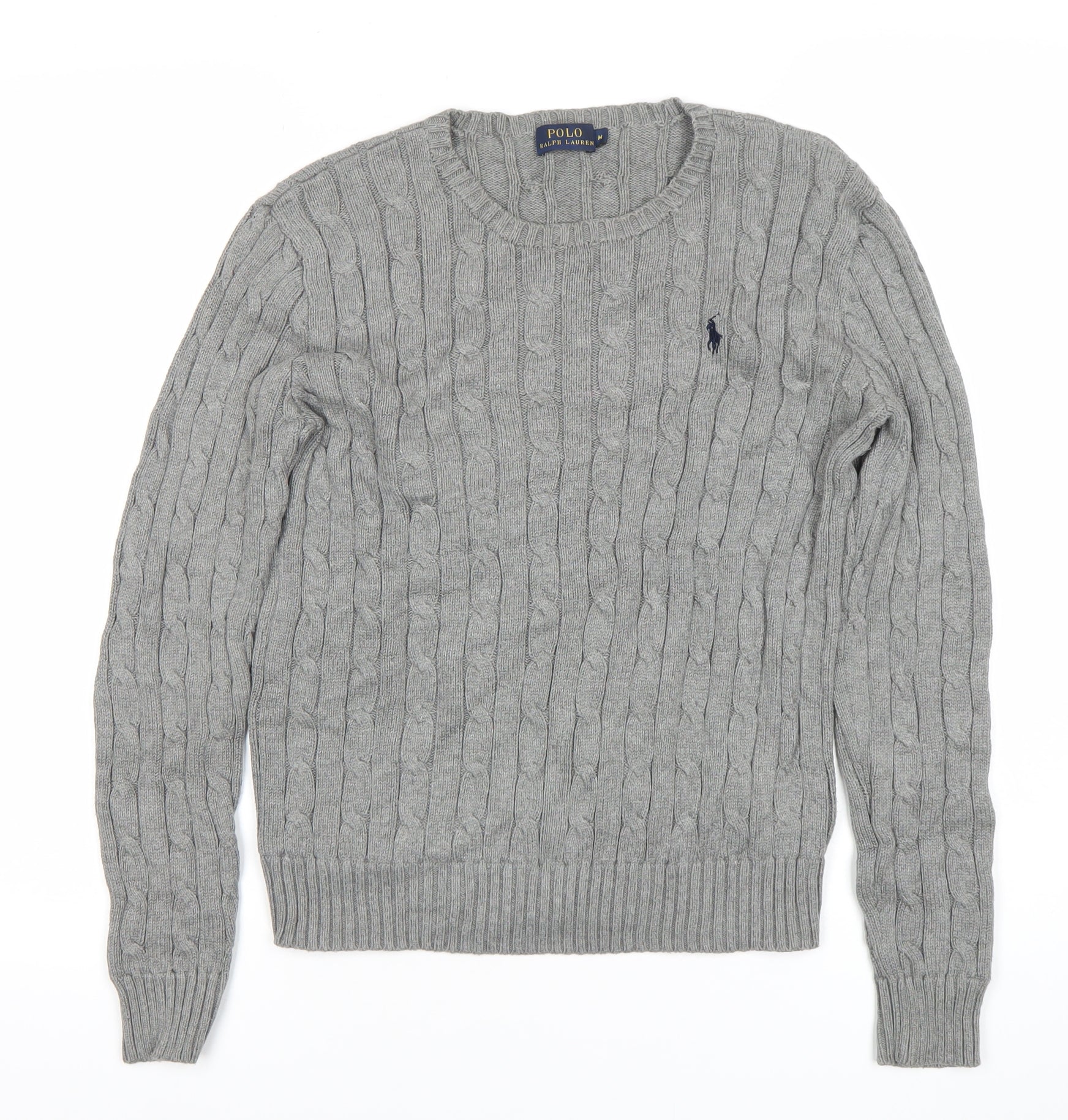 Ralph Lauren Womens Grey M Cable Knit Cotton Pullover Jumper