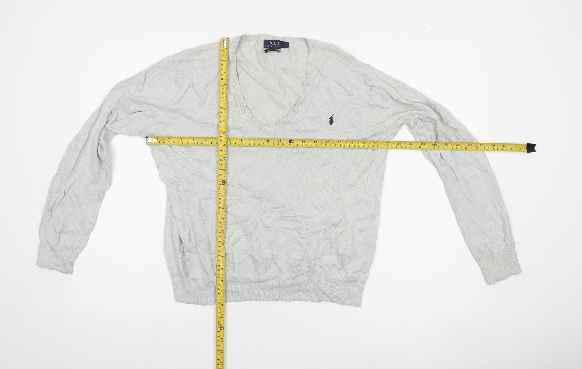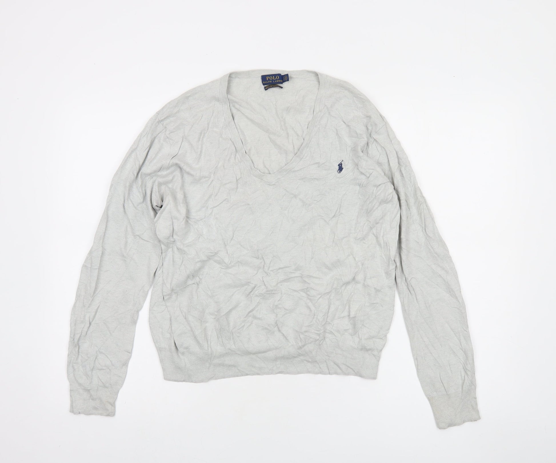 Ralph Lauren Womens Grey V-Neck Cotton Pullover Jumper Size L