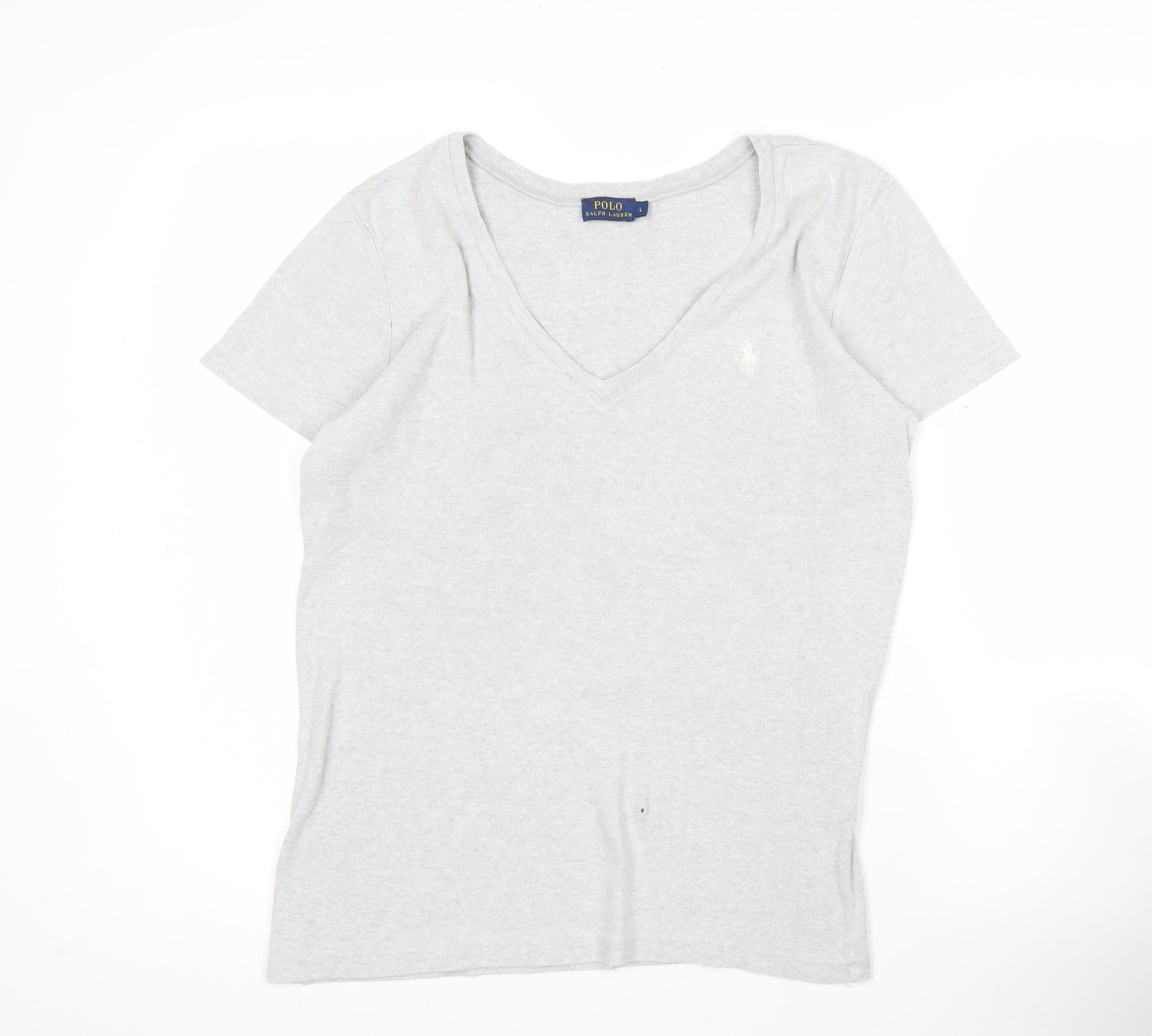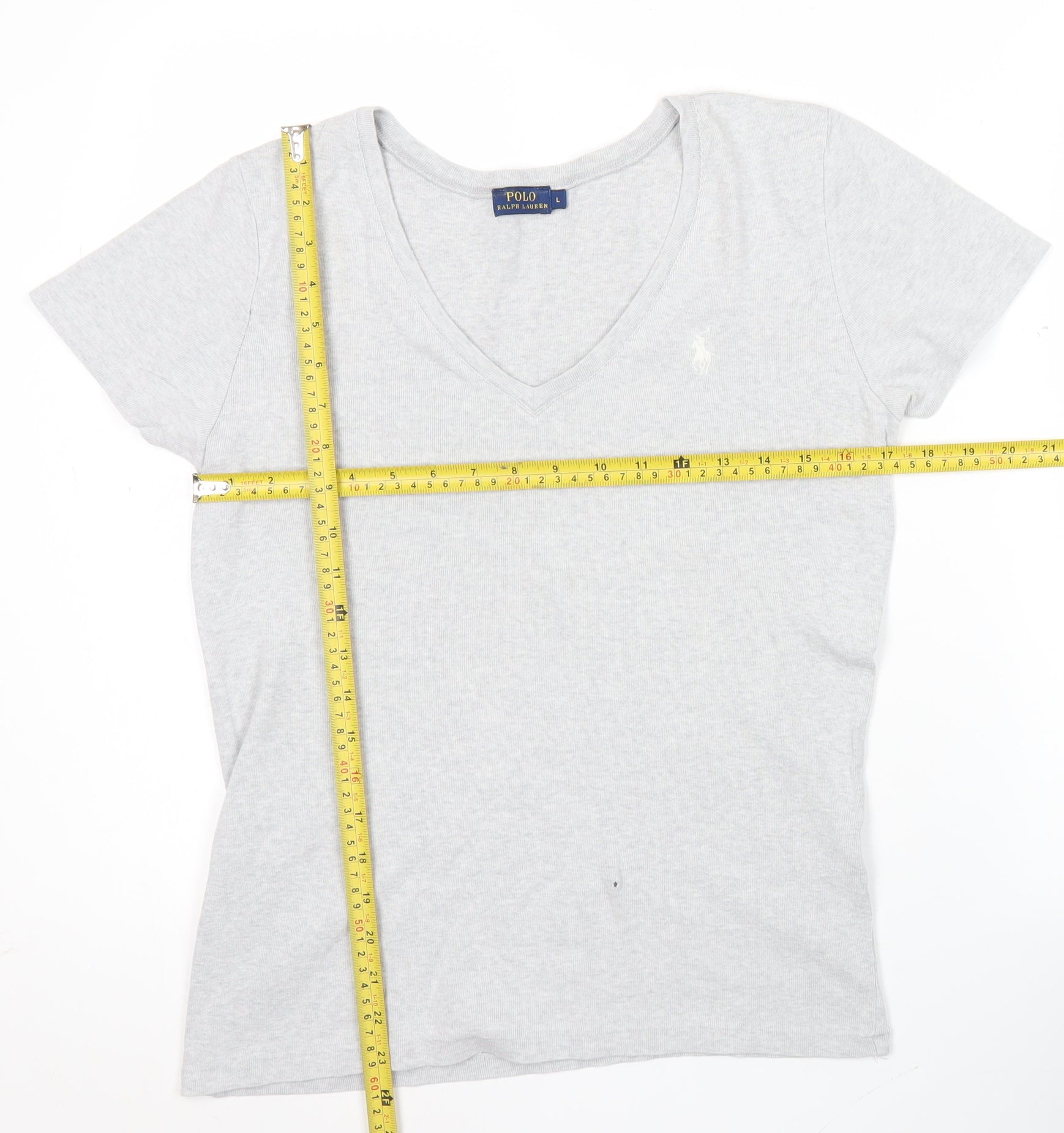 Ralph Lauren Womens Grey V-Neck T-Shirt Size L Embroidered Logo