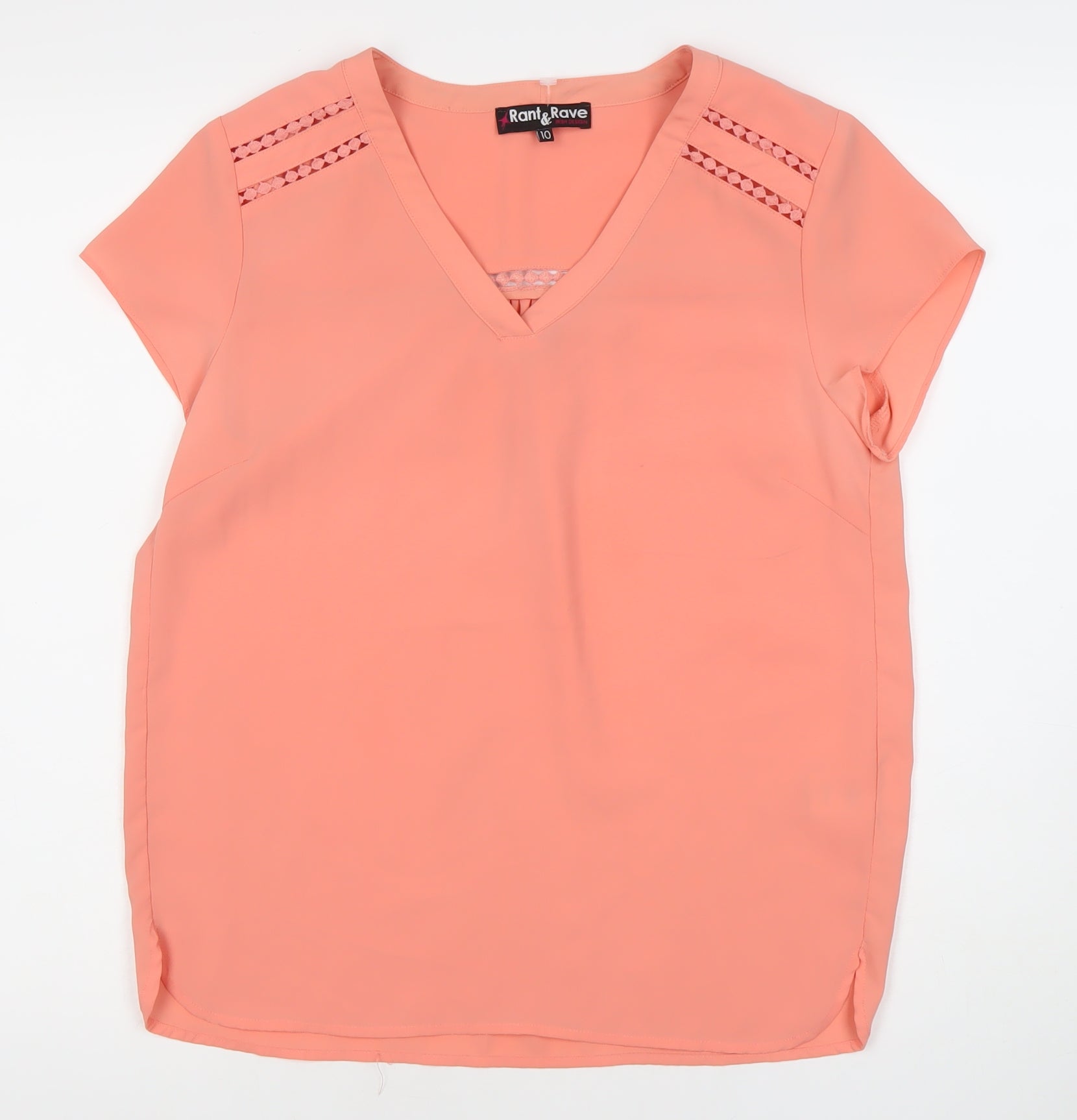 Rant & Rave Womens Pink Blouse Size 10 V-Neck Crochet Trim