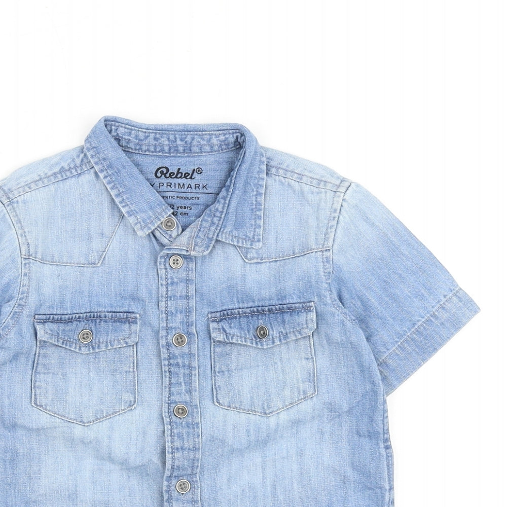 Rebel Boys Blue 100% Cotton Basic Button-Up Size 2 Years Collared Button