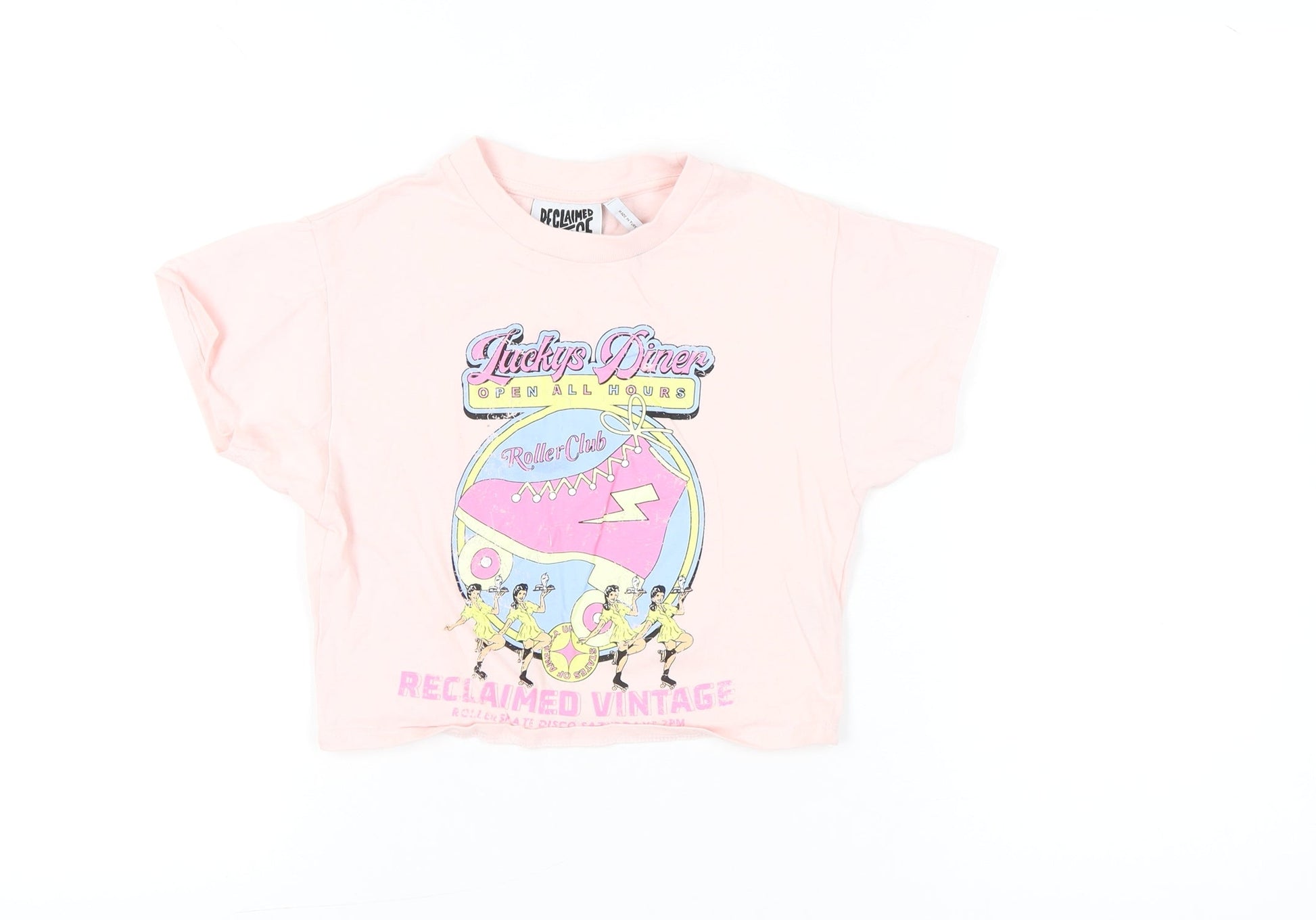 Reclaimed Vintage Womens Pink Cropped Graphic T-Shirt Size S