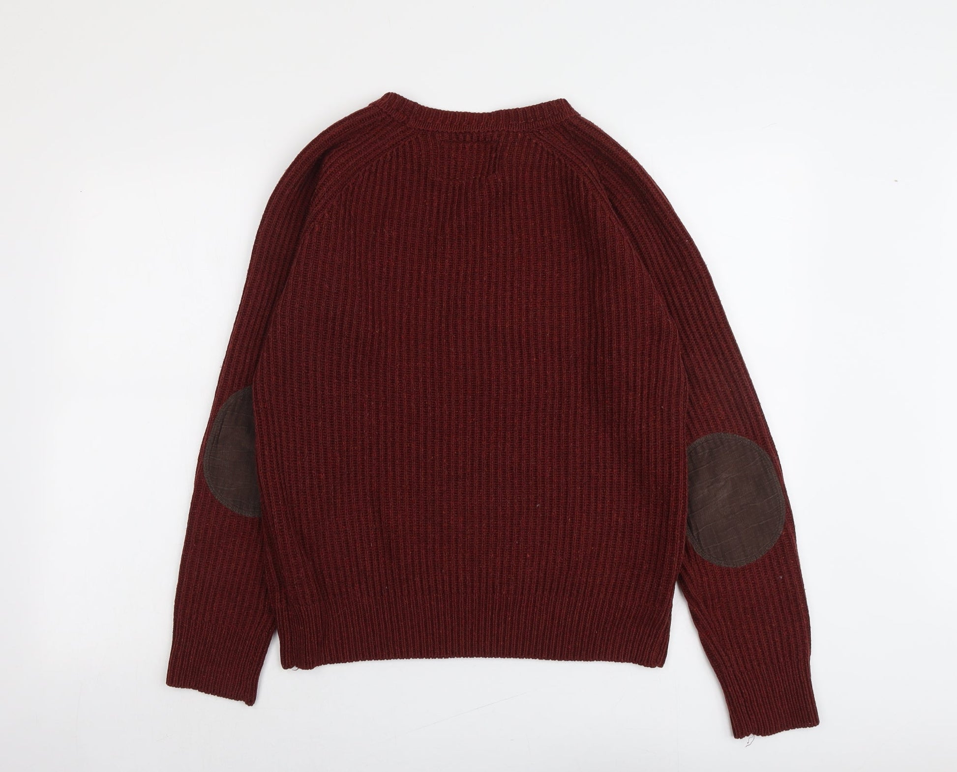 Red Herring Mens Red Round Neck Acrylic Pullover Jumper Size M Long Sleeve - Elbow Patches