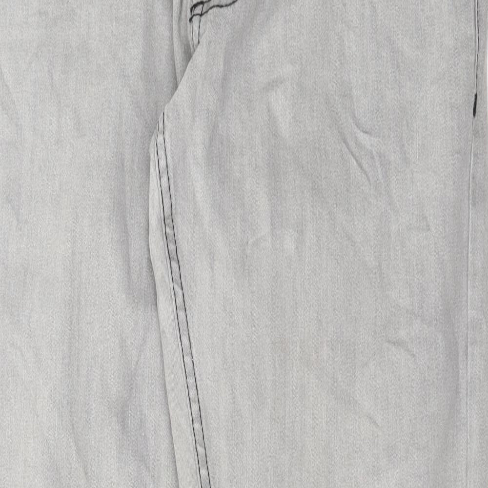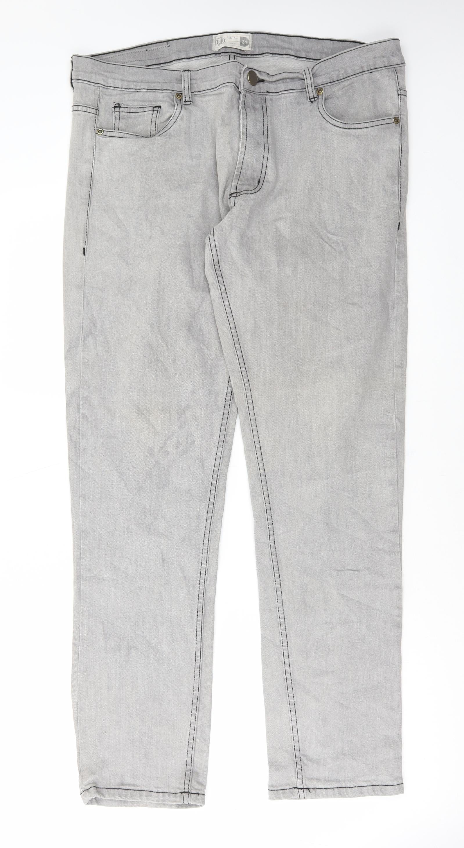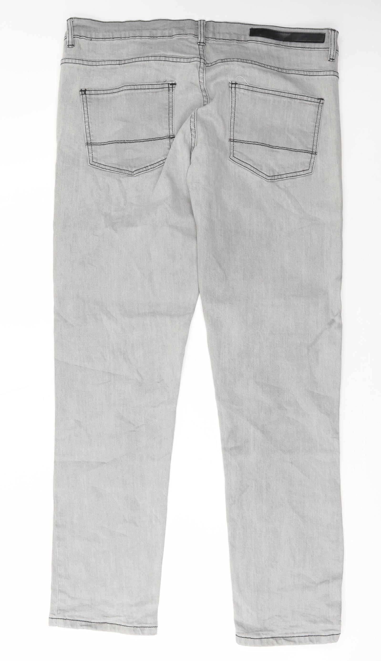 Redtag Mens Grey Cotton Straight Jeans Size 34 in L32 in Regular Button