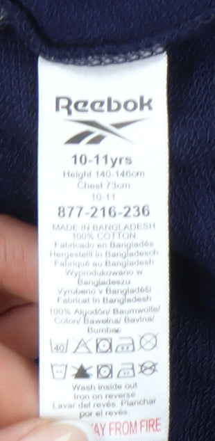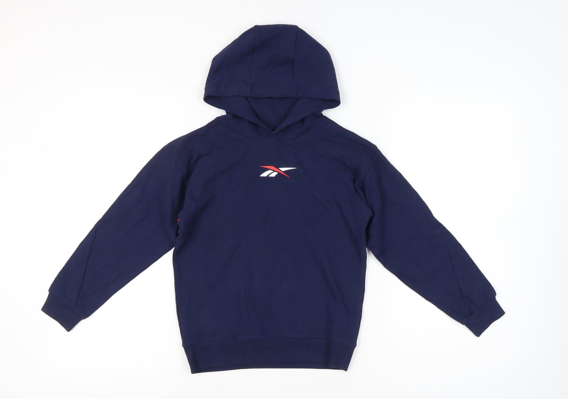 Reebok Boys Blue Pullover Hoodie Age 10-11 Years Cotton Logo Sportswear